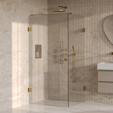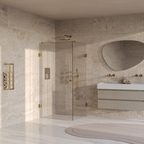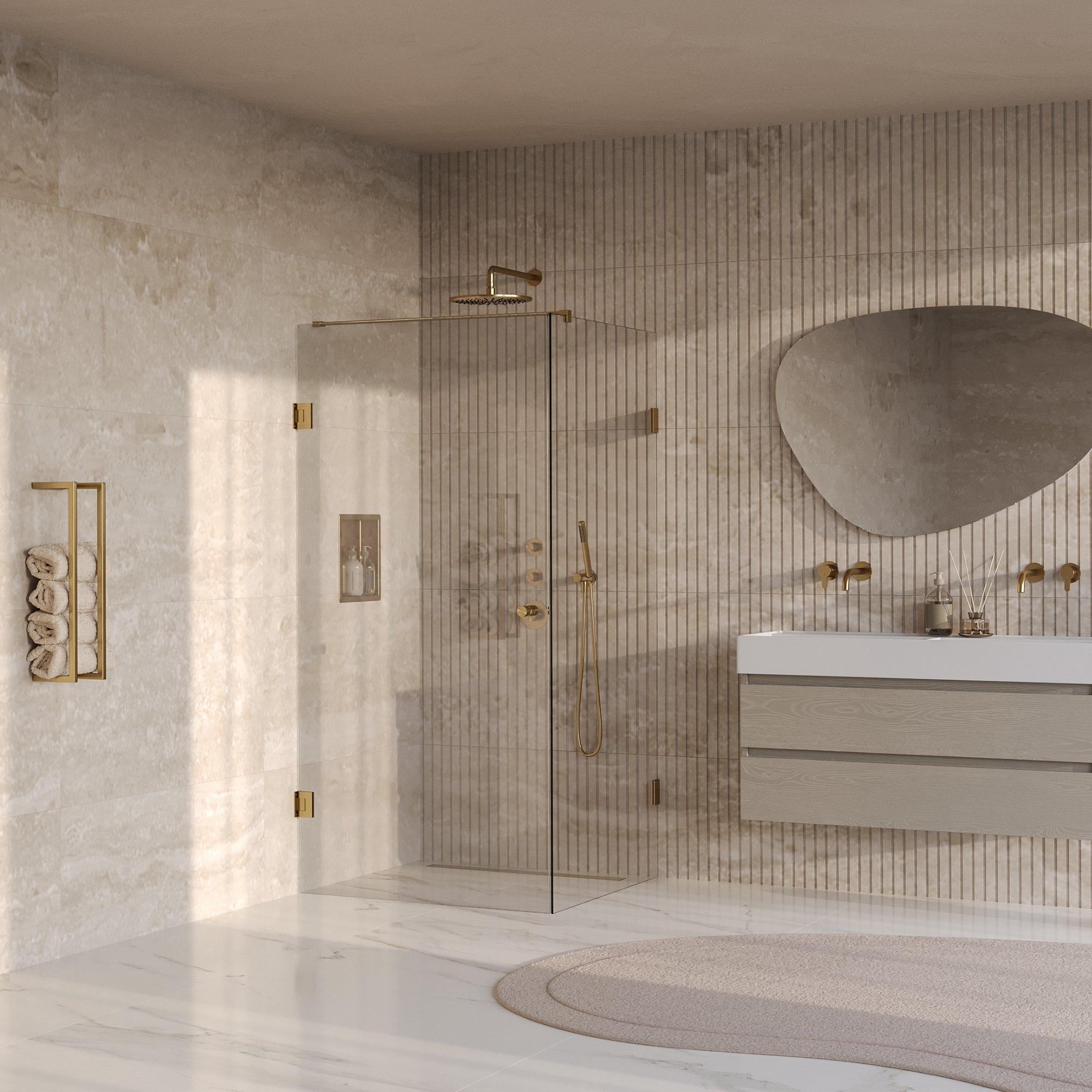 De combinatie van helder glas met een geborsteld goud PVD-afwerking maakt deze douchecabine tot een echte blikvanger. Het luxe profiel van roestvrij staal straalt klasse uit en voegt een warme, exclusieve sfeer toe aan je badkamer. Door het minimalistische ontwerp blijft de ruimte licht en open, waardoor je badkamer groter en uitnodigender aanvoelt. Dit stijlvolle element zorgt ervoor dat je badkamer niet alleen functioneel is, maar ook een plek waar je trots op bent. Bovendien past het tijdloze design moeiteloos bij verschillende interieurstijlen, van modern tot klassiek.