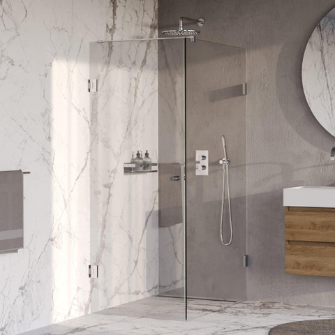 Deze douchecabine valt direct op door zijn strakke lijnen en moderne uitstraling. Het heldere glas zorgt voor een ruimtelijk effect, waardoor je badkamer groter en lichter lijkt. De chroomkleurige afwerking met hoogglans zorgt voor een luxe touch die moeiteloos aansluit bij diverse badkamerstijlen. Door het minimalistische design past deze cabine zowel in een moderne als een tijdloze badkamer. Het gebruik van hoogwaardige materialen zoals RVS en glas benadrukt de exclusiviteit en zorgt ervoor dat je jarenlang kunt genieten van een stijlvolle doucheomgeving die indruk maakt op iedereen die jouw badkamer betreedt.