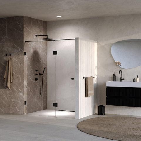 Deze nisdeur valt direct op door het minimalistische design zonder storende profielen, wat zorgt voor een strakke en moderne uitstraling. Het heldere glas laat het licht vrij door en opent de ruimte visueel, waardoor je badkamer groter en lichter aanvoelt. De mat zwarte accenten geven een eigentijdse touch die moeiteloos aansluit bij diverse interieurstijlen. Door de subtiele details en hoogwaardige afwerking voeg je een vleugje luxe toe aan je dagelijkse douchebeleving. Dit stijlvolle ontwerp maakt van jouw badkamer een plek waar je elke dag met plezier begint en eindigt.