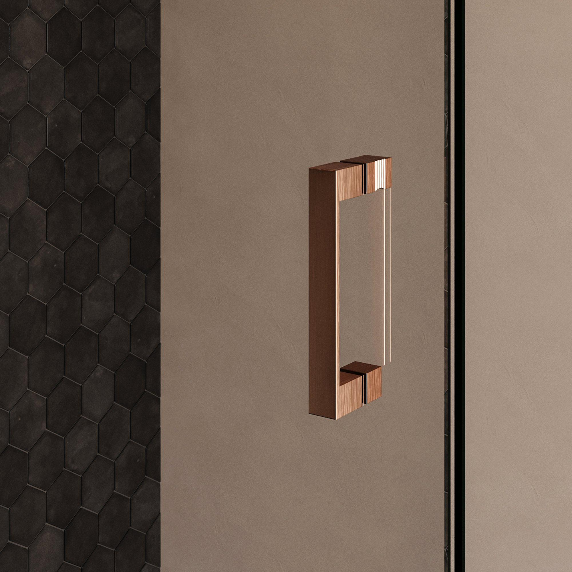 De combinatie van helder glas en een geborsteld koper PVD-afwerking geeft deze nisdeur een tijdloze en toch eigentijdse uitstraling. Het koperkleurige beslag voegt een warme, luxe touch toe die perfect past bij diverse badkamerstijlen, van modern tot klassiek. Door het minimalistische design blijft de deur subtiel aanwezig, terwijl het toch een echte blikvanger is. Zo geniet je van een badkamer die niet alleen functioneel is, maar ook visueel inspireert.