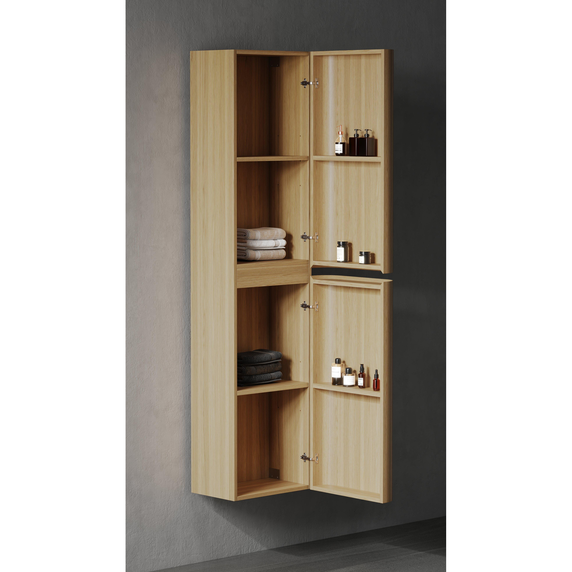 In jouw badkamer wil je dat alles op zijn plek valt, zowel qua stijl als opbergruimte. Deze prachtige hoge kast is een perfecte mix van elegantie en functionaliteit, waardoor het een essentieel onderdeel van jouw badkamerinrichting zal worden. Met zijn moderne design en subtiele afgeronde hoeken voegt deze kast een vleugje verfijning toe aan de ruimte. Of je nu extra opbergruimte nodig hebt of gewoon een vleugje luxe wilt toevoegen, deze kast staat garant voor een harmonieus en chique interieur.