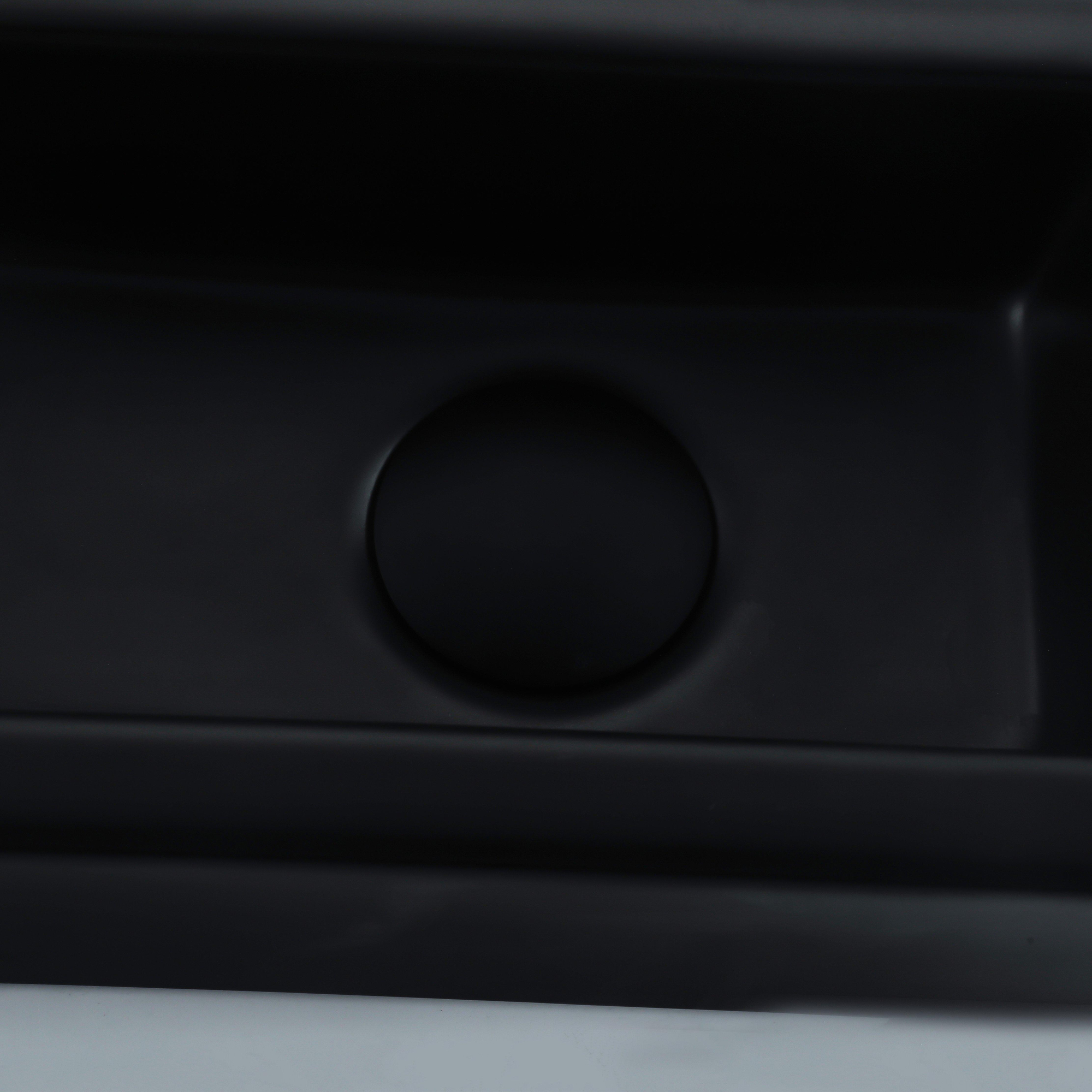 QeramiQ Fuente Fonteinset - 37.5x18.5x9cm - keramiek - kraangat links - fonteinkraan wit mat - afvoerplug - verlaagd sifon - Mat Zwart