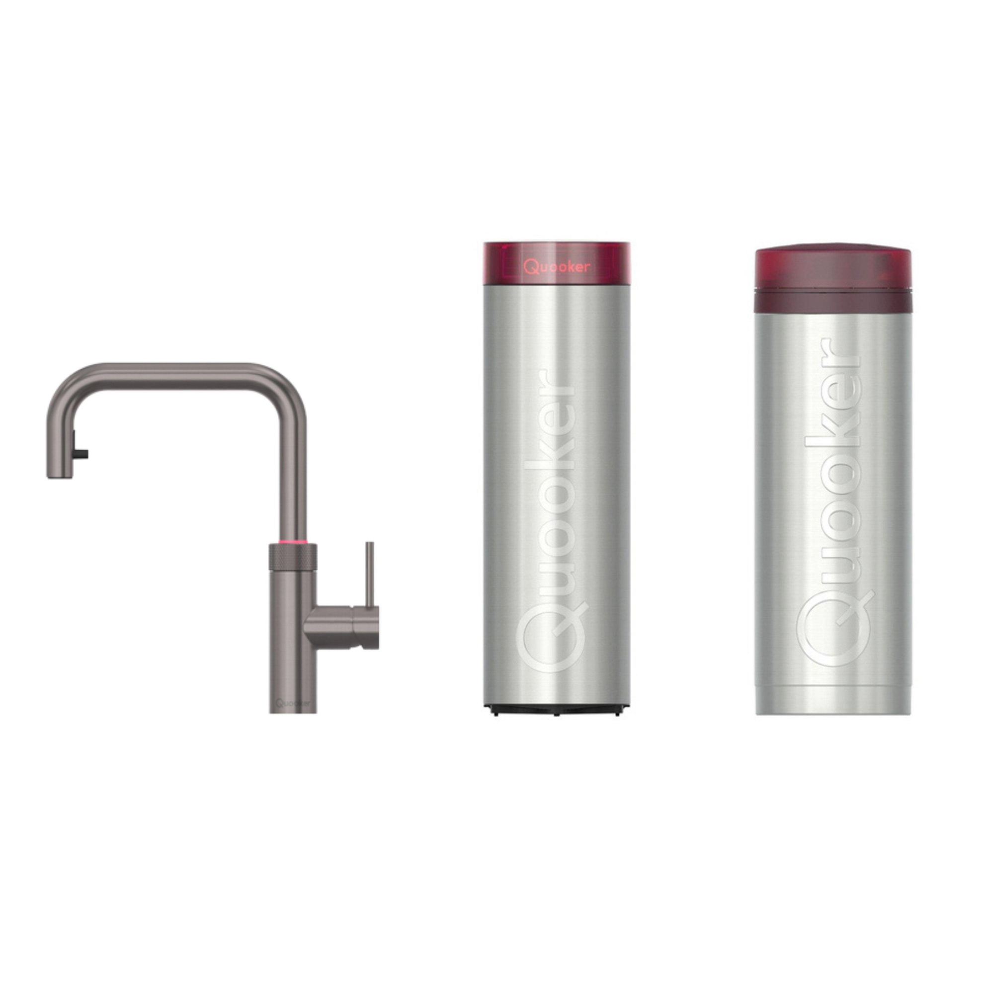 Quooker BE Flex Square kokendwaterkraan - draaibare & uittrekbare uitloop - PRO3 incl. Cube reservoir - Warm / kokend / bruisend / gefilterd water - gunmetal