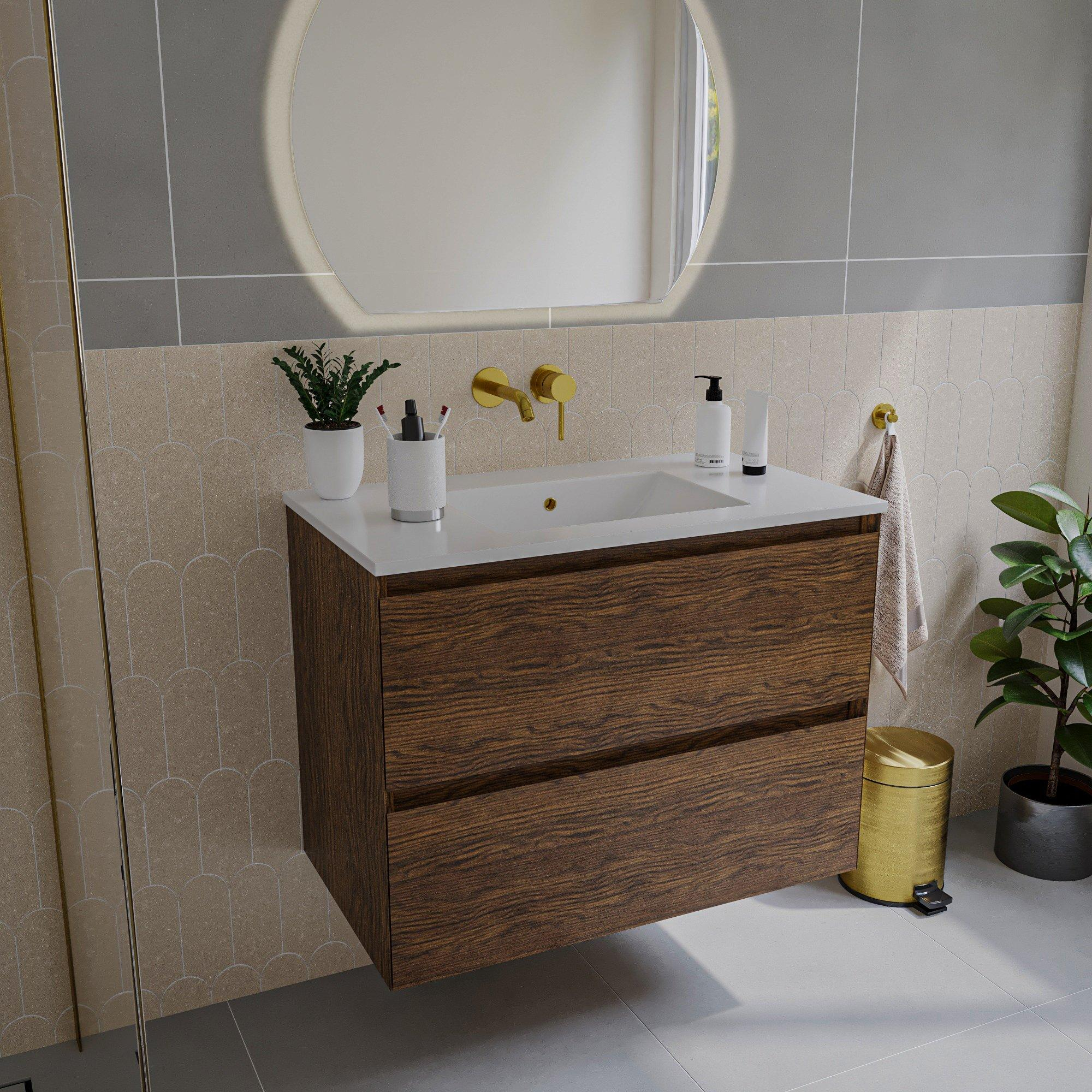 Het meubel valt direct op door zijn elegante en natuurlijke uitstraling. Het warme Walnut pure eikenhout geeft jouw badkamer een luxe en authentieke sfeer. Dankzij het strakke, greeploze design past het meubel moeiteloos in zowel moderne als klassieke badkamers. De subtiele houtstructuur zorgt voor een levendige en natuurlijke touch, waardoor je badkamer een stuk uitnodigender wordt. Met dit meubel kies je voor een tijdloos design dat jarenlang meegaat en nooit uit de mode raakt. Zo geniet je elke dag van een stijlvolle en verzorgde badkameromgeving.