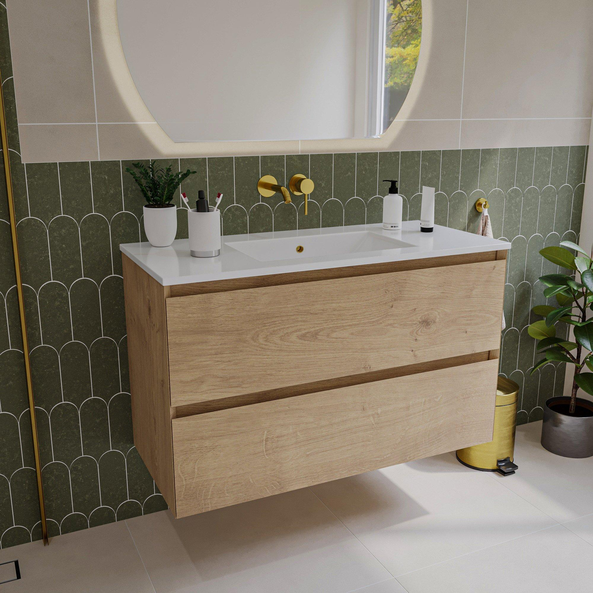 Saniclass Holz Pure Badkameronderkast - 100x45x60cm - 2 lades - Eiken natural