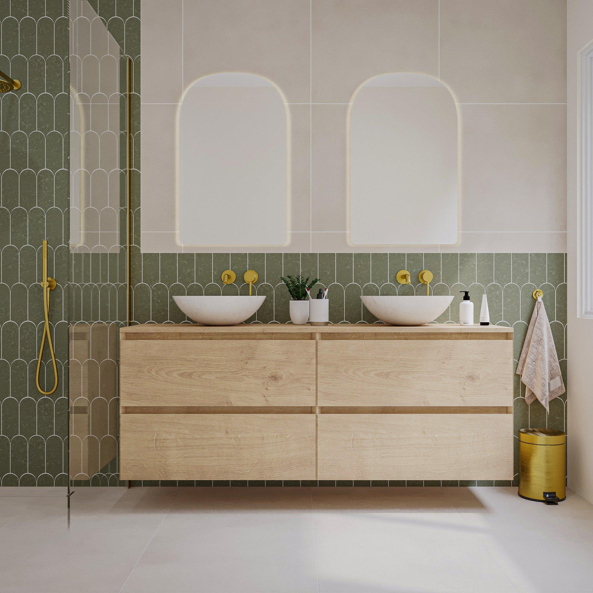 De natuurlijke eikenhoutlook geeft dit meubel een warme en uitnodigende uitstraling die moeiteloos past in diverse badkamerstijlen. Het greeploze design zorgt voor een strakke, moderne afwerking die rust en eenvoud uitstraalt. Hierdoor creëer je een harmonieuze sfeer waarin functionaliteit en esthetiek perfect samenkomen. Dit meubel is niet alleen een praktische opberger, maar ook een echte blikvanger die jouw badkamer een luxe uitstraling geeft. Zo geniet je elke dag van een stijlvolle omgeving die rust en comfort uitstraalt.