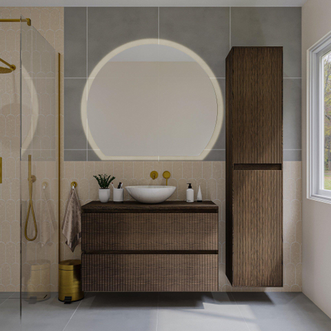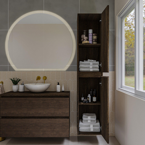 Deze hoge kast valt direct op door zijn elegante ontwerp en hoogwaardige afwerking. Het eiken charcoal hout geeft een warme, natuurlijke uitstraling die tegelijkertijd modern oogt. De verticale ribbelfronten zorgen voor een subtiel speels effect, waardoor de kast een echte blikvanger wordt in je badkamer. Door de neutrale kleur en het tijdloze design past hij bij uiteenlopende interieurstijlen, van strak en minimalistisch tot landelijk en industrieel. Zo voeg je moeiteloos een stijlvol element toe dat jarenlang meegaat.