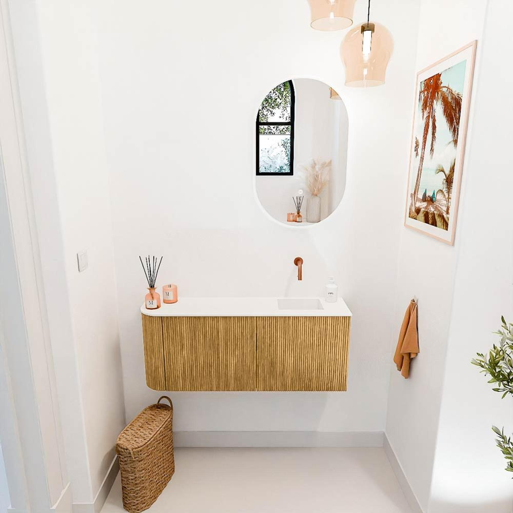 Mondiaz JOYA 101.6cm toiletmeubel - ronding links kleur Oak - Wastafel FAYE positie Rechts Zonder kraangat kleur Talc.