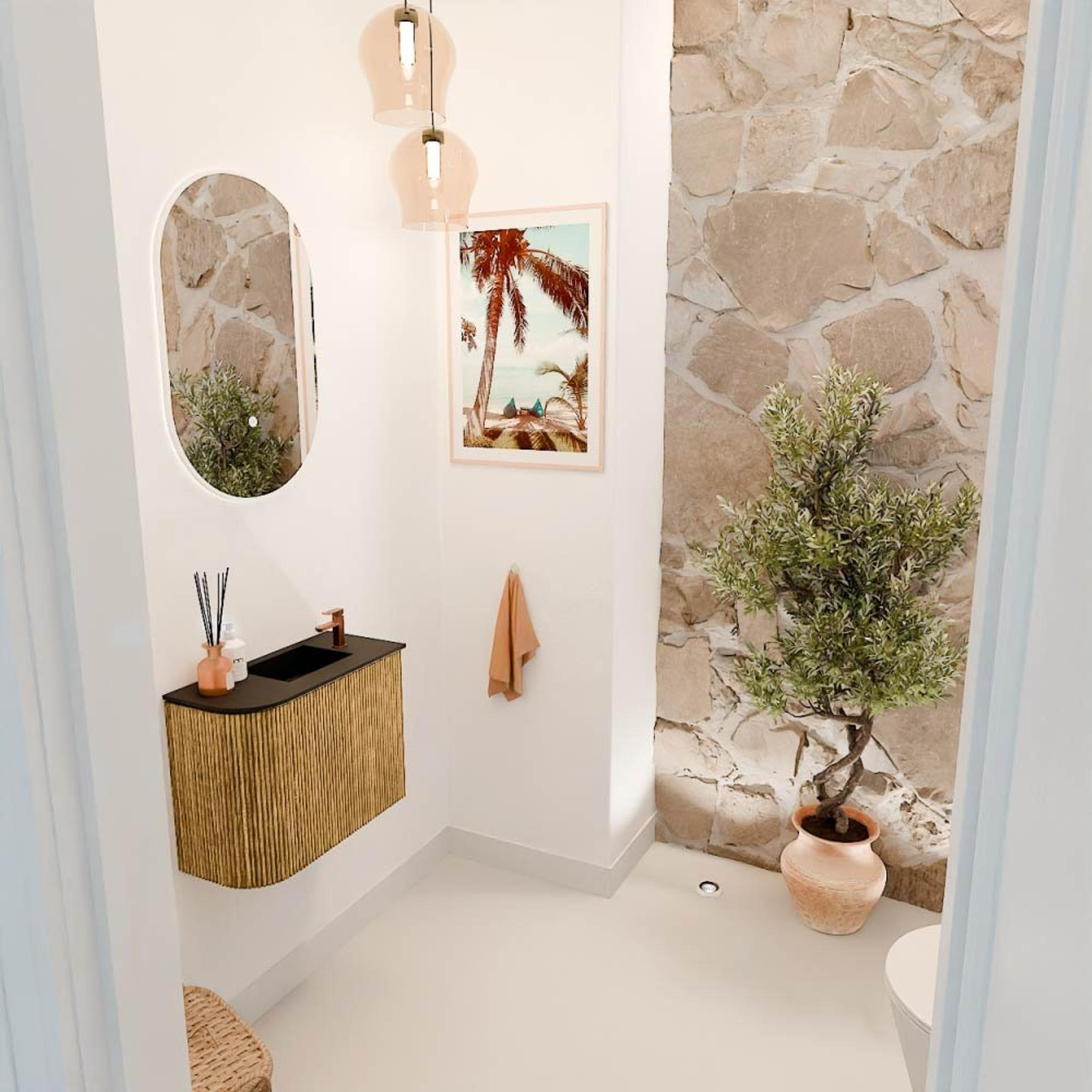 Mondiaz JOYA 51.6cm toiletmeubel - ronding links kleur Oak - Wastafel FAYE positie Rechts 1 kraangat kleur Urban.