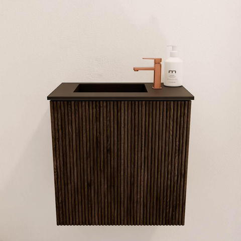 Met dit compacte en stijlvolle meubel geef je jouw badkamer of toiletruimte direct een warme en moderne uitstraling. Het meubel is perfect afgestemd op kleinere ruimtes, zonder in te leveren op functionaliteit of design. Door de mooie walnootkleur en het verticale ribbelpatroon krijgt jouw badkamer een natuurlijke en eigentijdse sfeer. De wastafel met links gepositioneerd kraangat maakt het gebruik extra comfortabel en praktisch, terwijl de hoogwaardige materialen zorgen voor een duurzame investering waar je jarenlang plezier van hebt. Zo transformeer je eenvoudig je badkamer in een plek waar je elke dag met plezier begint en eindigt.