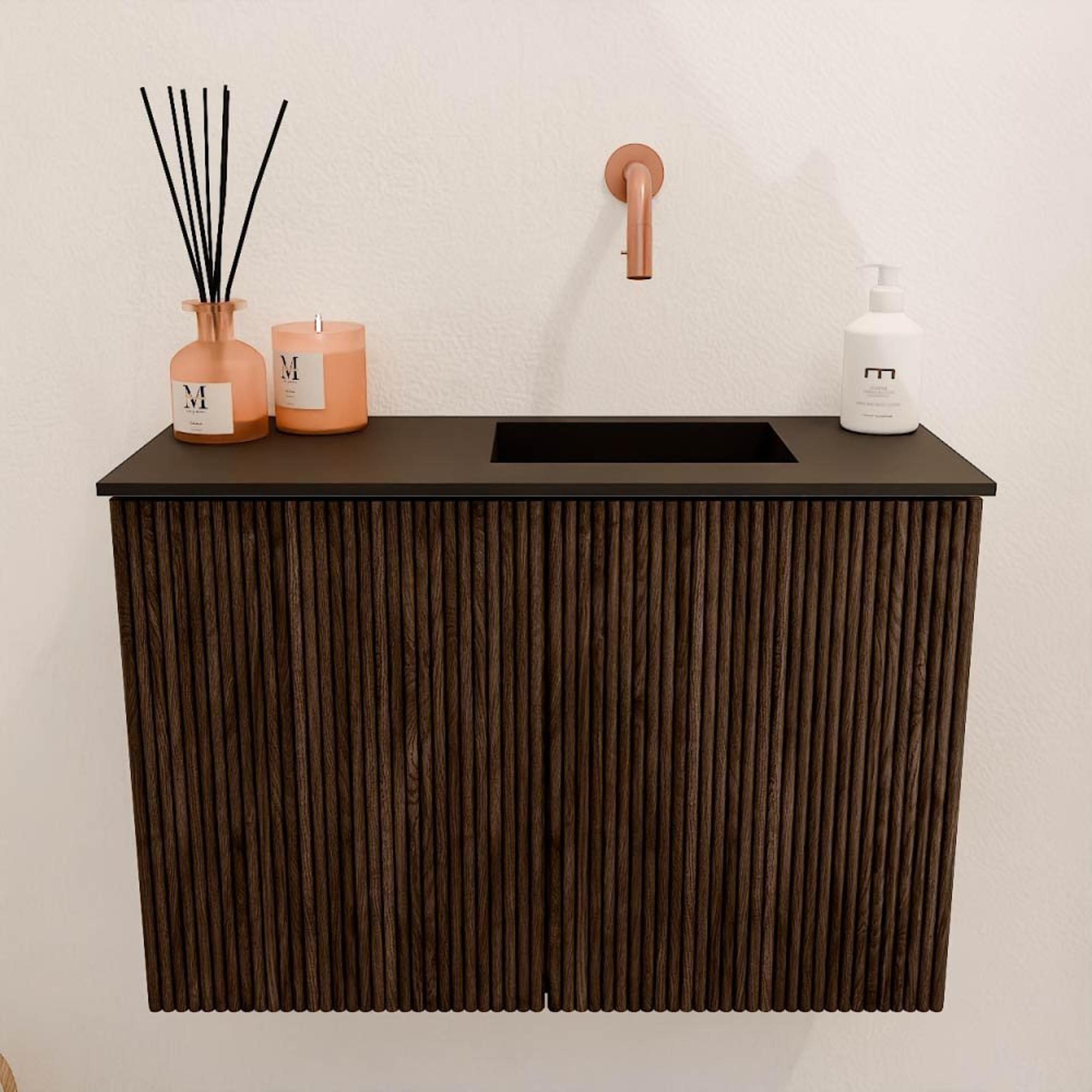 Met zijn warme walnootkleur en de verticale ribbelstructuur op de fronten is dit meubel een echte blikvanger. De natuurlijke houtafwerking geeft jouw badkamer een luxe uitstraling zonder te overheersen. Dit meubel combineert moeiteloos met zowel moderne als klassieke badkamerinrichtingen, waardoor het een veelzijdige keuze is. Door het subtiele design voeg je een vleugje elegantie toe, terwijl het meubel toch tijdloos blijft. Zo creëer je een badkamer die niet alleen functioneel is, maar ook uitnodigt om te verblijven.