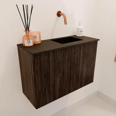 Mondiaz JOYA 60cm toiletmeubel - kleur Walnut - Wastafel FAYE positie Rechts Zonder kraangat kleur Urban.