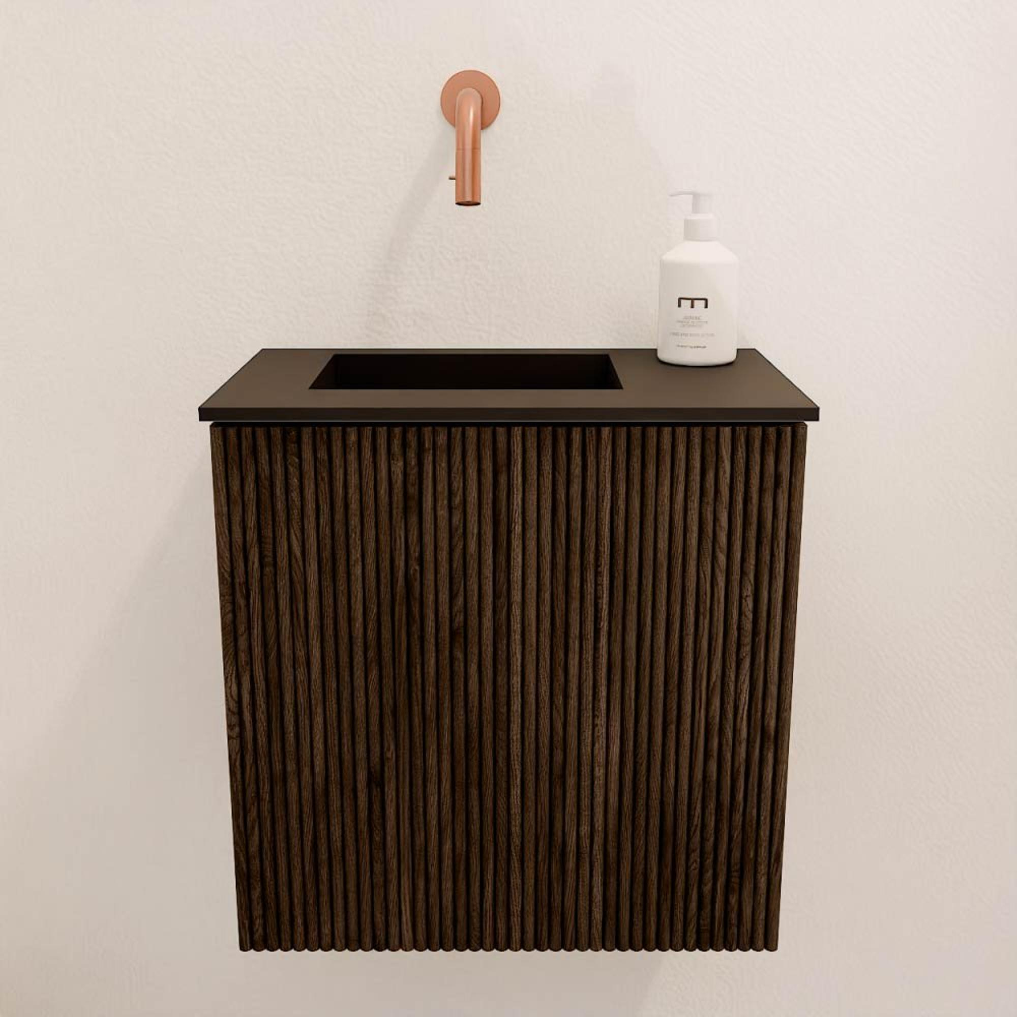 Mondiaz JOYA 40cm toiletmeubel - kleur Walnut - Wastafel FAYE positie Links Zonder kraangat kleur Urban.