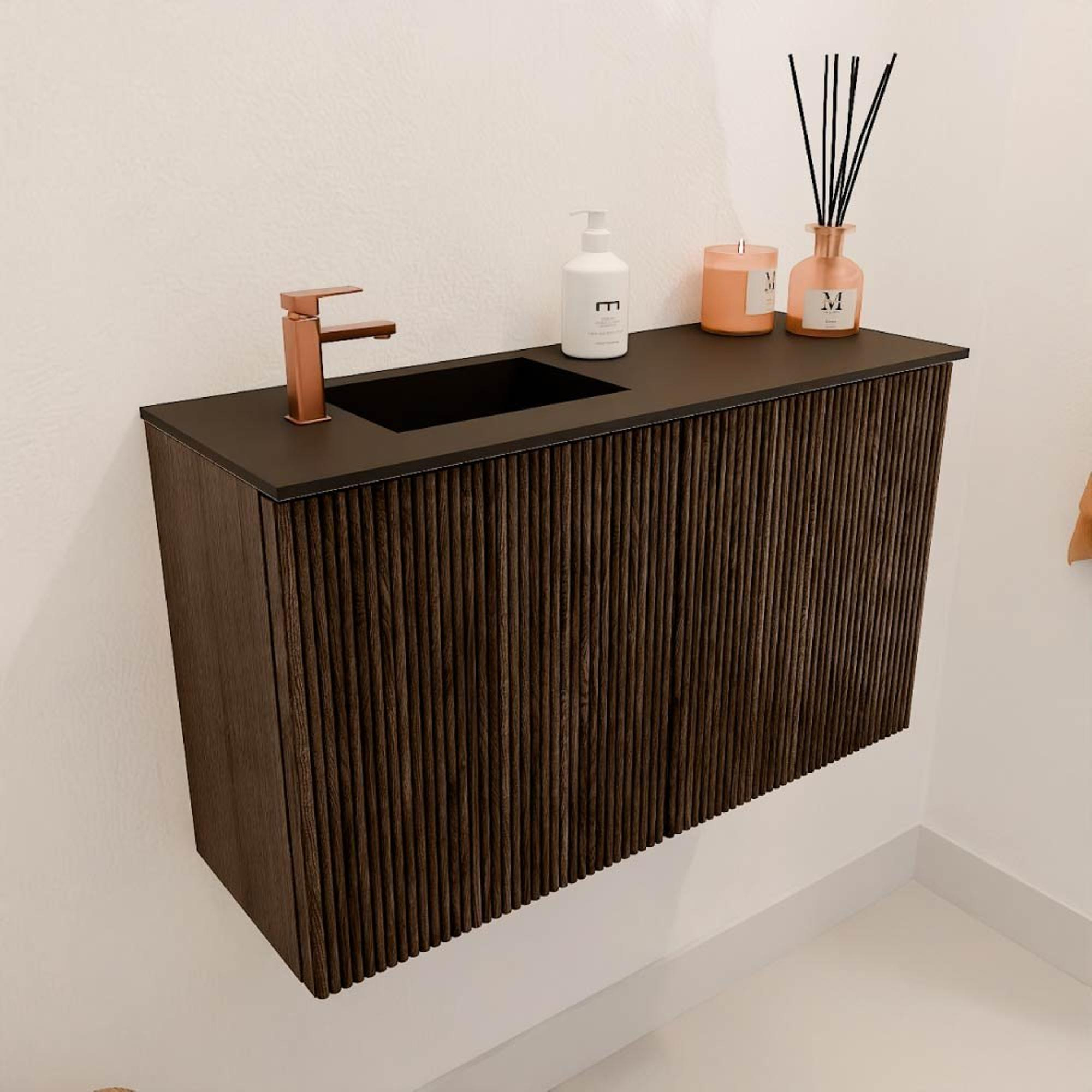 De combinatie van massief eikenhout aan de voorkant en eikenfineer aan de zijkanten geeft dit meubel een luxe en tijdloze uitstraling. De warme walnootkleur past moeiteloos bij zowel klassieke als moderne badkamers. De subtiele ribbelstructuur op de frontpanelen voegt een uniek detail toe dat direct in het oog springt. Door het strakke design en de hoogwaardige afwerking krijgt jouw badkamer een stijlvolle upgrade die jarenlang meegaat. Zo geniet je niet alleen van een mooi meubel, maar ook van een echte blikvanger die jouw persoonlijke smaak weerspiegelt.