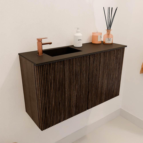 Mondiaz JOYA 70cm toiletmeubel - kleur Walnut - Wastafel FAYE positie Links 1 kraangat kleur Urban.