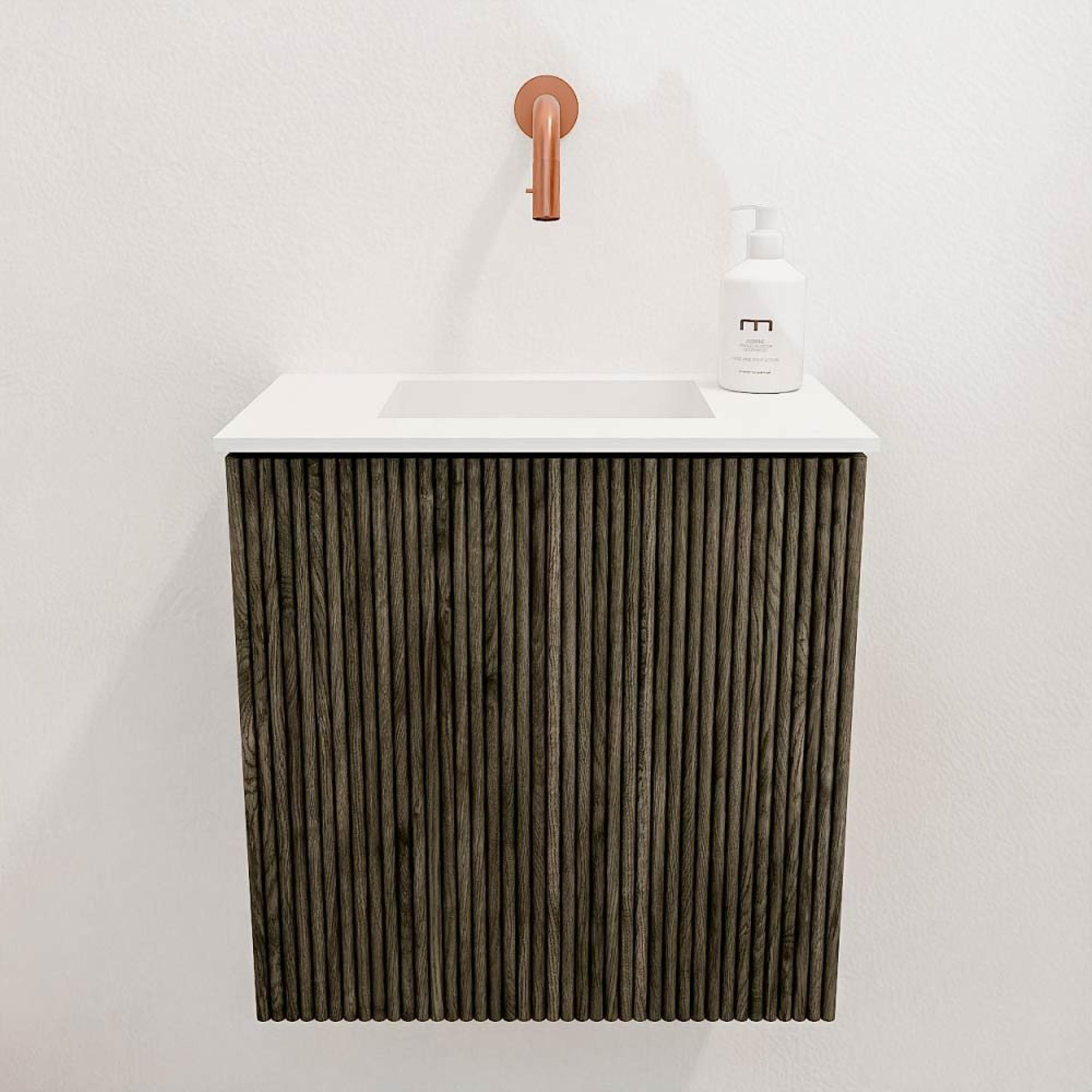 Met dit compacte meubel geef je jouw badkamer of toiletruimte een stijlvolle en praktische upgrade. Het meubel combineert een warme, natuurlijke uitstraling met een strak en modern design, waardoor het moeiteloos in diverse interieurstijlen past. Dankzij de slimme afmetingen van 40 cm breed en 24,5 cm diep, is het ideaal voor kleinere ruimtes waar je toch niet wilt inleveren op comfort en functionaliteit. De combinatie van een massief eiken front en een fraai afgewerkte wastafel in een zachte talc-kleur zorgt voor een rustige en uitnodigende sfeer. Dit meubel nodigt uit tot ontspannen momenten en maakt het dagelijks gebruik van je badkamer een stuk prettiger. Bovendien is het meubel eenvoudig aan de wand te monteren, wat zorgt voor een ruimtelijk effect en extra gemak bij het schoonmaken. Zo geniet je niet alleen van een mooi meubelstuk, maar ook van een praktische oplossing die jouw badkamer compleet maakt.