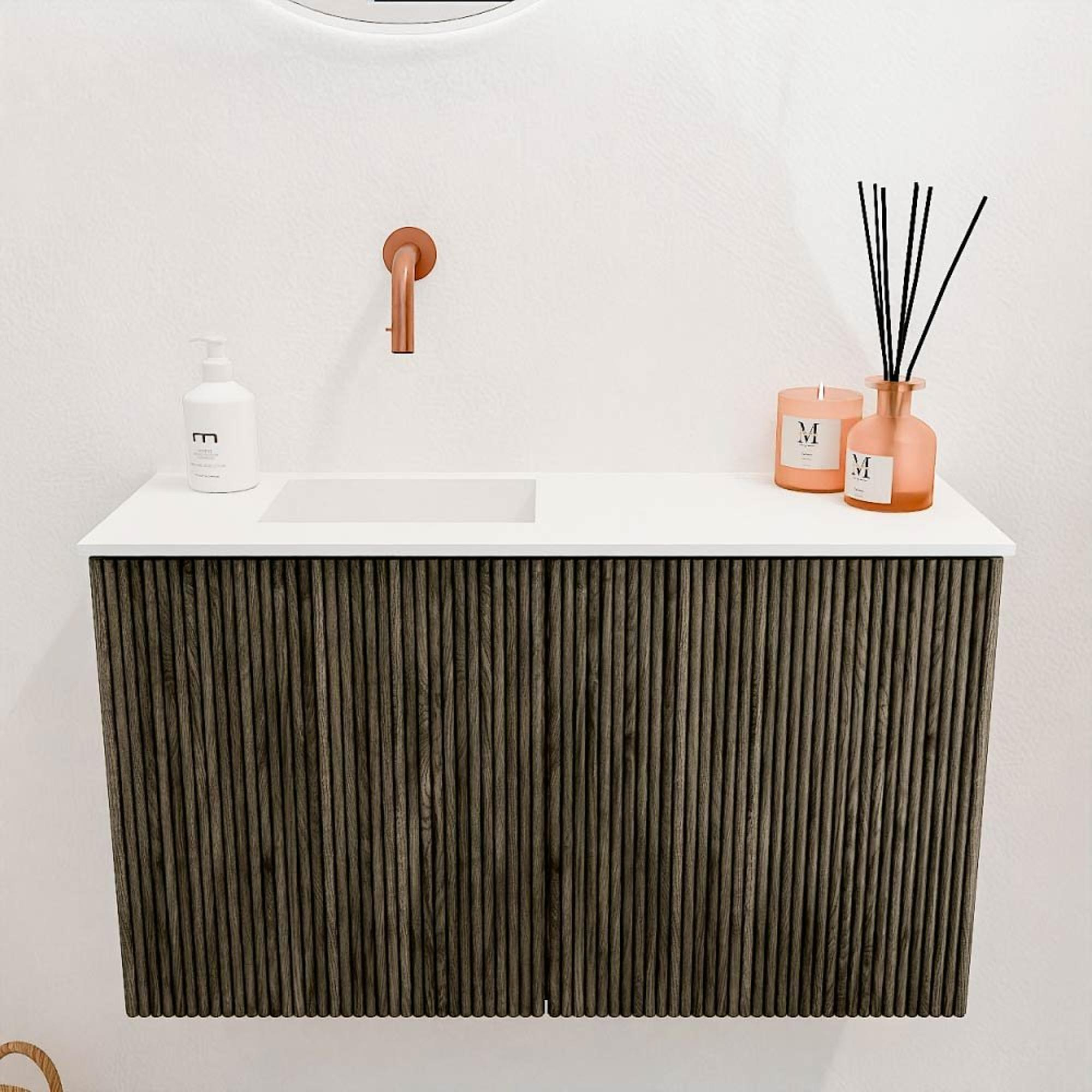 Met massief eikenhout en kwalitatief eikenfineer ben je verzekerd van een meubel dat lang meegaat en bestand is tegen de dagelijkse vochtige omstandigheden in de badkamer. De Solid Surface wastafel in de kleur Talc is niet alleen mooi, maar ook gemakkelijk schoon te houden en bestand tegen krassen en vlekken. Zo blijft je meubel er jarenlang als nieuw uitzien, zonder dat je je zorgen hoeft te maken over slijtage. Duurzaamheid betekent hier ook dat je investeert in kwaliteit die je badkamer toekomstbestendig maakt.
