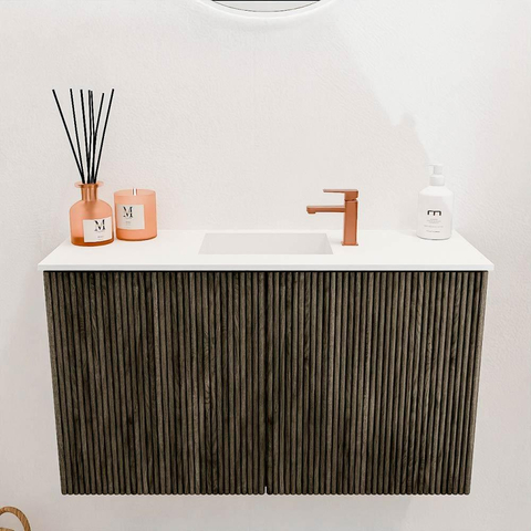Het meubel valt meteen op door zijn tijdloze design en de hoogwaardige afwerking. De kleur Shadow geeft een diepe, natuurlijke uitstraling die moeiteloos aansluit bij diverse badkamerstijlen, van modern tot klassiek. Het ribbelfront van massief eikenhout voegt een subtiele textuur toe die het meubel uniek maakt. Deze stijlvolle details zorgen ervoor dat jouw badkamer een plek wordt waar je met plezier tijd doorbrengt. Bovendien zorgt de combinatie van hout en zachte tinten voor een warme sfeer, die rust en comfort uitstraalt.