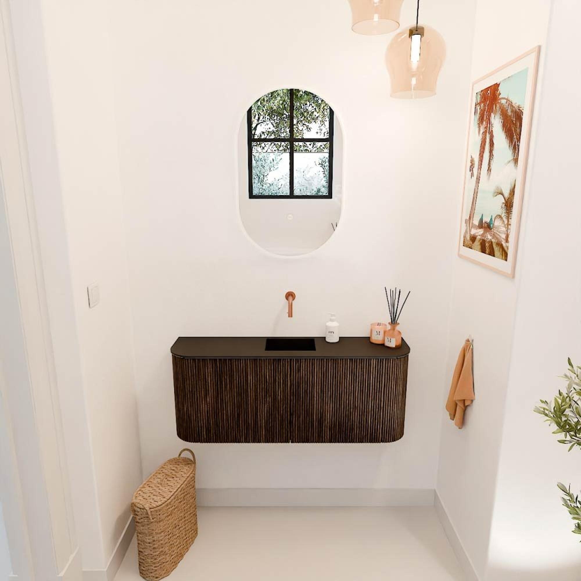 Mondiaz JOYA 103.2cm toiletmeubel - ronding links en rechts kleur Walnut - Wastafel FAYE positie Midden Zonder kraangat kleur Urban.