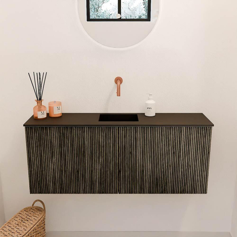 Dit meubel valt direct op door zijn elegante en tijdloze design. De combinatie van het donkere Shadow met het warme eikenhout geeft een natuurlijke en luxe uitstraling. De strakke lijnen en het ribbelfront zorgen voor een moderne touch, terwijl de massief houten fronten een authentiek gevoel toevoegen. Hierdoor past het meubel perfect in zowel klassieke als eigentijdse badkamers. Met dit meubel haal je een echte blikvanger in huis die jouw badkamer een unieke sfeer geeft.