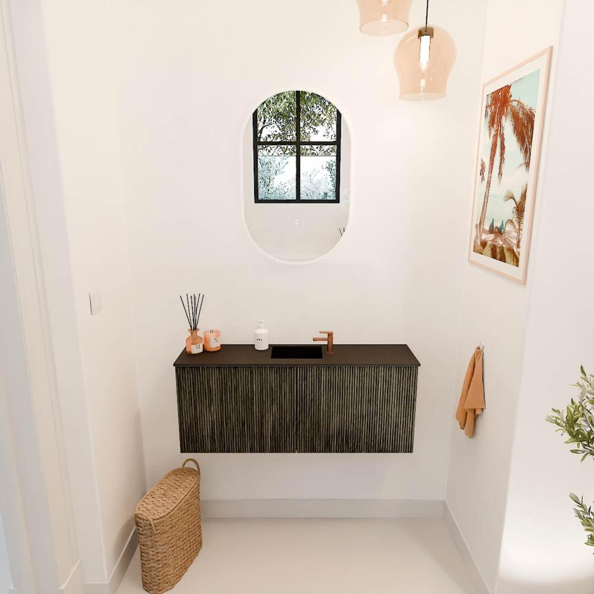 Mondiaz JOYA 100cm toiletmeubel - kleur Shadow - Wastafel FAYE positie Midden 1 kraangat kleur Urban.