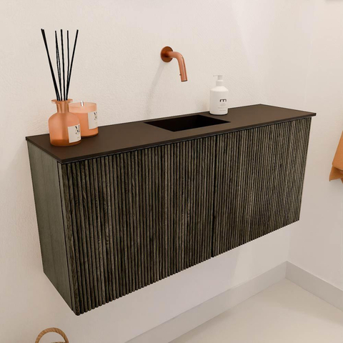 De warme kleur Shadow en het ribbelfront van massief eikenhout geven dit meubel een tijdloze en natuurlijke uitstraling. Dit zorgt ervoor dat het meubel moeiteloos aansluit bij diverse interieurstijlen, van modern tot klassiek. Het subtiele design maakt het een echte blikvanger zonder te overheersen. Door de hoogwaardige afwerking straalt het meubel kwaliteit en vakmanschap uit, waardoor jouw badkamer direct een luxe uitstraling krijgt. Zo geniet je elke dag van een stijlvolle omgeving die uitnodigt tot ontspanning.