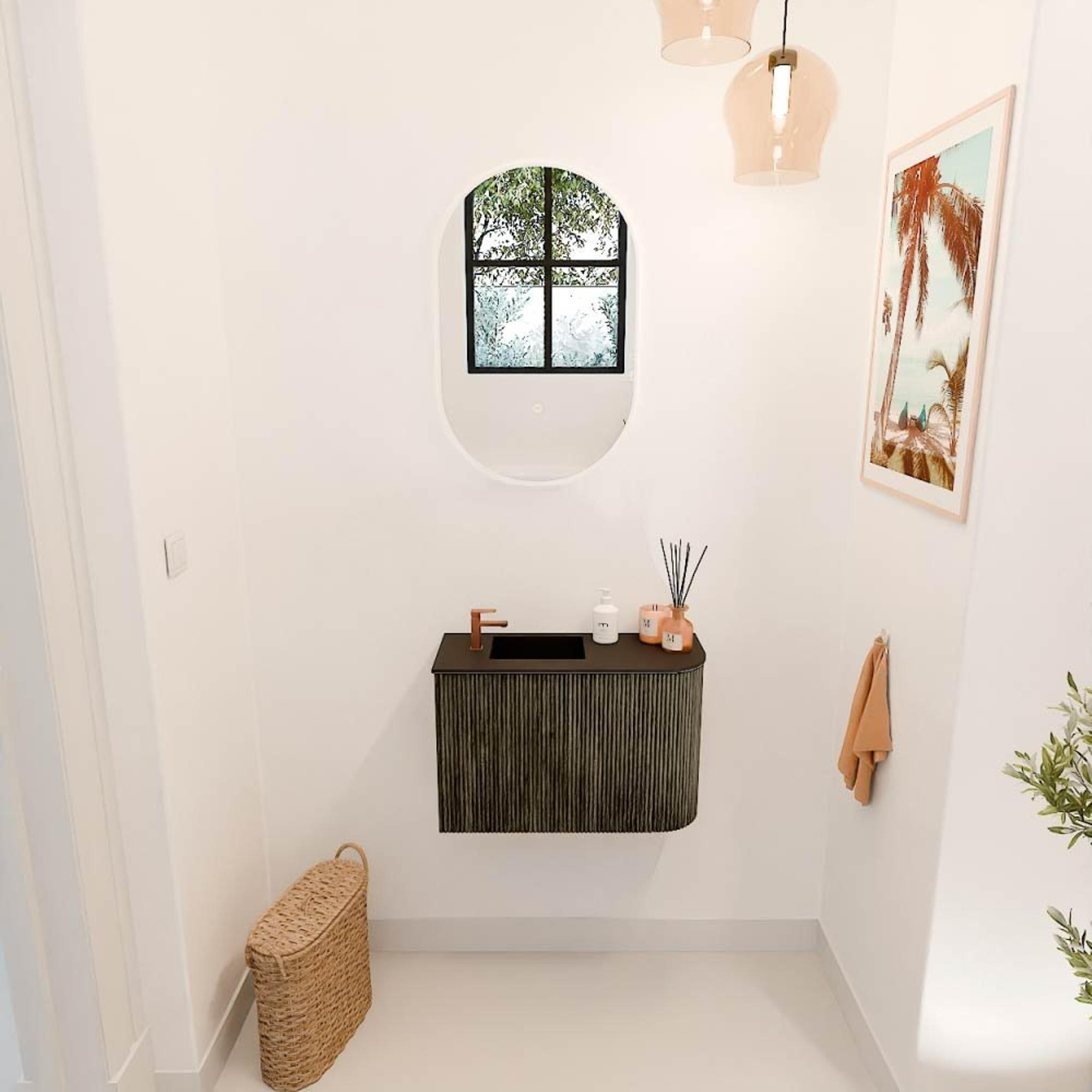 Mondiaz JOYA 61.6cm toiletmeubel - ronding rechts kleur Shadow - Wastafel FAYE positie Links 1 kraangat kleur Urban.