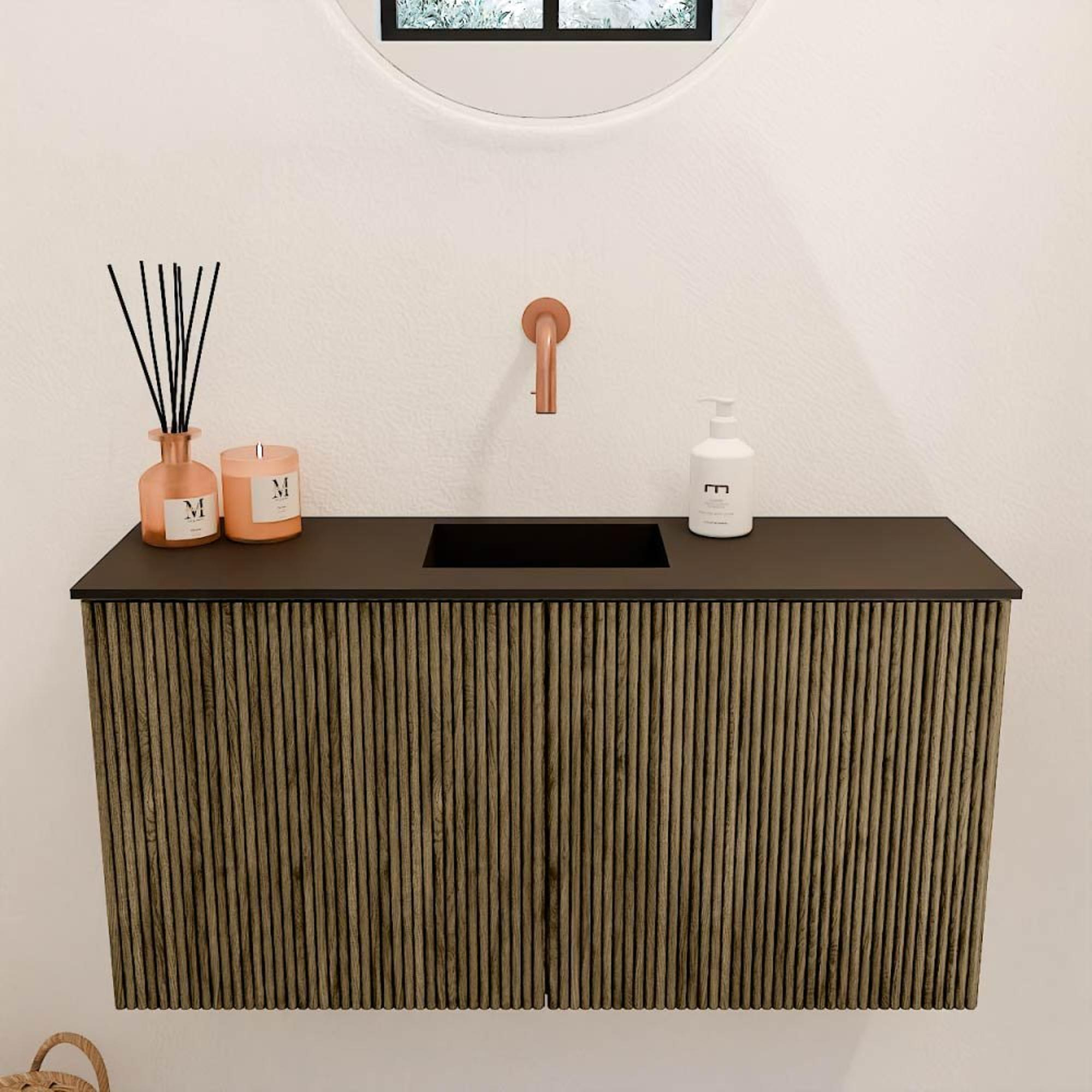 Met dit elegante meubel geef je jouw badkamer of toiletruimte direct een moderne en sfeervolle uitstraling. Het combineert functionaliteit met een strak design, waardoor het niet alleen praktisch is, maar ook een echte blikvanger wordt. Dankzij de subtiele kleur Dusk en de ribbelstructuur op de fronten krijgt jouw ruimte een warme, eigentijdse sfeer die uitnodigt tot ontspanning. De wastafel met een centrale positie zonder kraangat biedt je de vrijheid om zelf een kraan te kiezen die perfect bij jouw stijl en wensen past. Zo creëer je een persoonlijke en doordachte badkamer waar je elke dag met plezier begint.