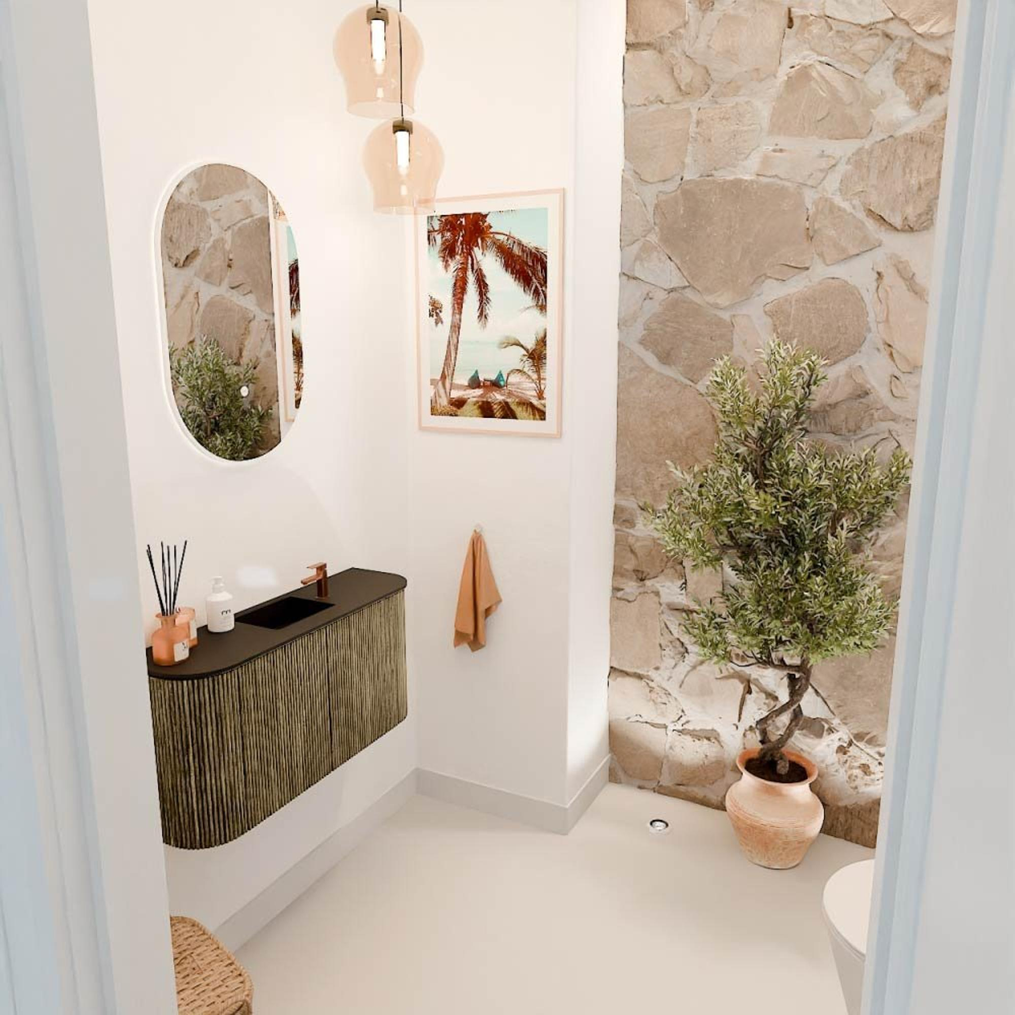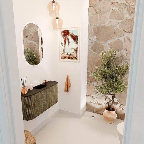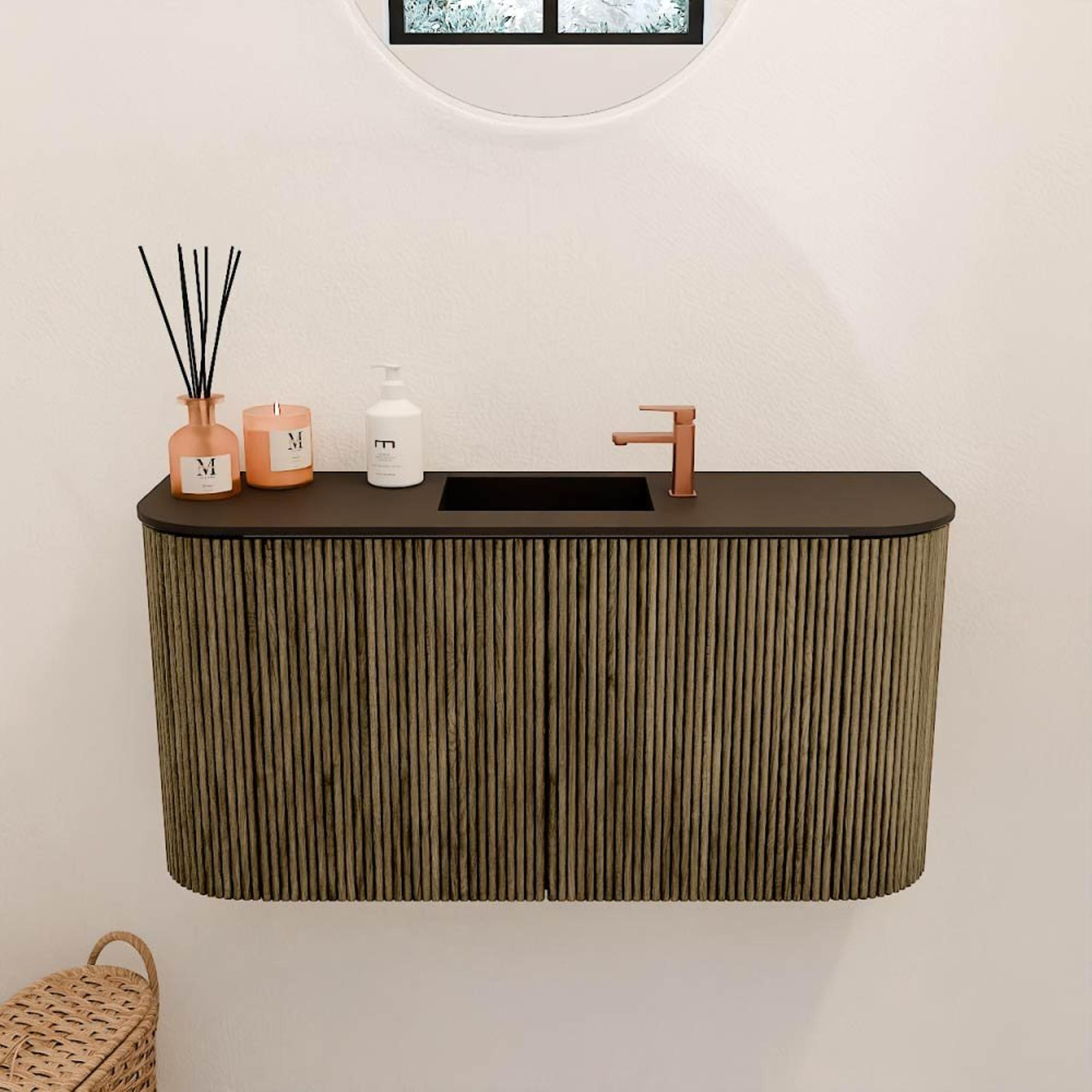 Dit meubel is een toonbeeld van verfijnde stijl. De ribbelstructuur op het front in combinatie met de warme, natuurlijke houttinten maakt het een echte blikvanger in elke badkamer. De afgeronde hoeken aan beide zijden zorgen voor een zachte, organische vorm die het geheel een moderne en toch tijdloze uitstraling geeft. Zo voeg je moeiteloos een vleugje luxe toe aan jouw badkamerinterieur, zonder dat het te opzichtig wordt. De kleur Dusk is subtiel en veelzijdig, waardoor het meubel makkelijk te combineren is met verschillende badkamerstijlen en accessoires.
