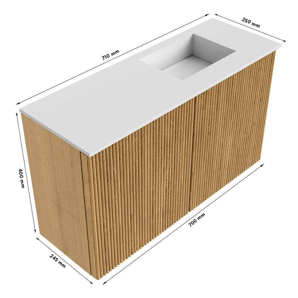 - Afmetingen: 70 cm breed, 24,5 cm diep, 40 cm hoog – perfect voor compacte en ruime badkamers