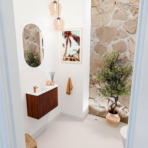 - Kleur Ruby voor het meubel en Talc voor de wastafel – een mooi contrast
