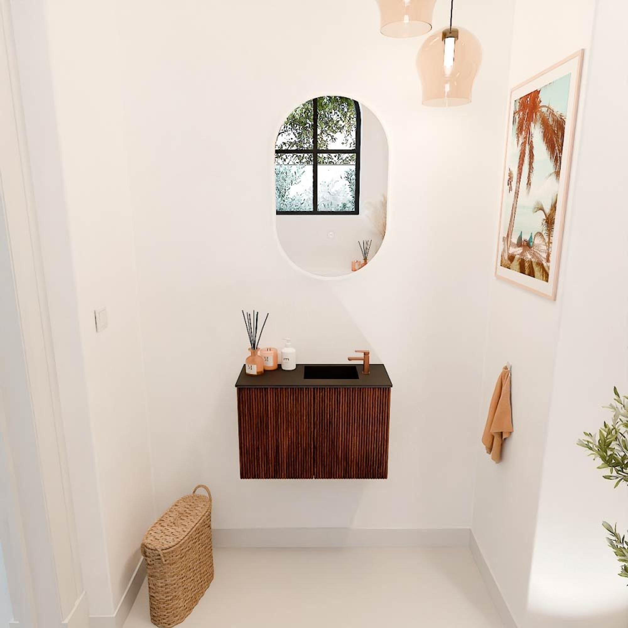Transformeer jouw badkamer met dit prachtige meubel dat niet alleen praktisch is, maar ook een echte blikvanger vormt. De warme, robuuste uitstraling van het meubel geeft je badkamer direct een stijlvolle en uitnodigende sfeer. Dankzij de doordachte afmetingen en het slimme ontwerp benut je elke centimeter optimaal, waardoor je badkamer er niet alleen mooier uitziet, maar ook functioneler wordt. De combinatie van hoogwaardige materialen en een modern design zorgt ervoor dat dit meubel jarenlang meegaat en jouw badkamer een tijdloze uitstraling geeft. Of je nu een complete make-over plant of gewoon een accent wilt toevoegen, dit meubel brengt jouw badkamer naar een hoger niveau.