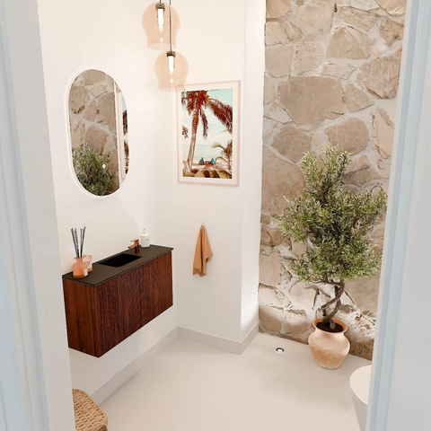 - Kleur Ruby voor het meubel en Urban voor de wastafel – een stijlvolle en warme combinatie