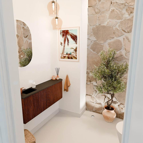 Met dit prachtige meubel geef je jouw badkamer direct een stijlvolle en warme uitstraling. Het combineert een modern design met natuurlijke materialen, waardoor het niet alleen praktisch is, maar ook een echte blikvanger wordt. Dankzij de subtiele ronding aan de rechterkant en de elegante kleur Ruby krijgt jouw badkamer een unieke touch die je elke dag opnieuw zal waarderen. De wastafel met één kraangat aan de linkerkant maakt het gebruiksgemak compleet, terwijl de hoogwaardige afwerking zorgt voor een duurzame en betrouwbare toevoeging aan je interieur. Zo transformeer je jouw badkamer in een plek waar comfort en design hand in hand gaan.