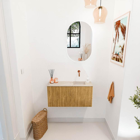 De combinatie van massief eikenhout en eikenfineer zorgt voor een natuurlijke en warme uitstraling die direct sfeer brengt in je badkamer. De verticale groeven geven het meubel een eigentijdse twist, waardoor het zowel klassiek als modern oogt. Dit maakt het eenvoudig om het meubel te combineren met andere elementen in je badkamer, van strakke tegels tot zachte textielaccenten. Door te kiezen voor een meubel met zo’n verfijnde afwerking, investeer je in een tijdloos design dat jarenlang mooi blijft.