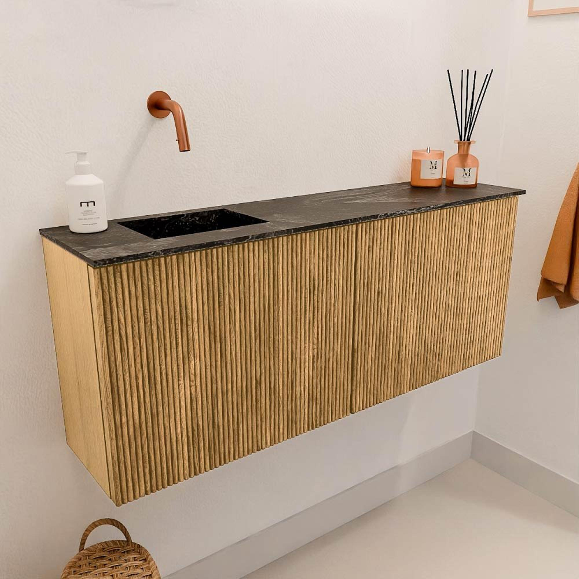 Mondiaz JOYA-DLUX 100cm toiletmeubel - kleur Oak - Wastafel FAYE positie Links Zonder kraangat kleur Lava.