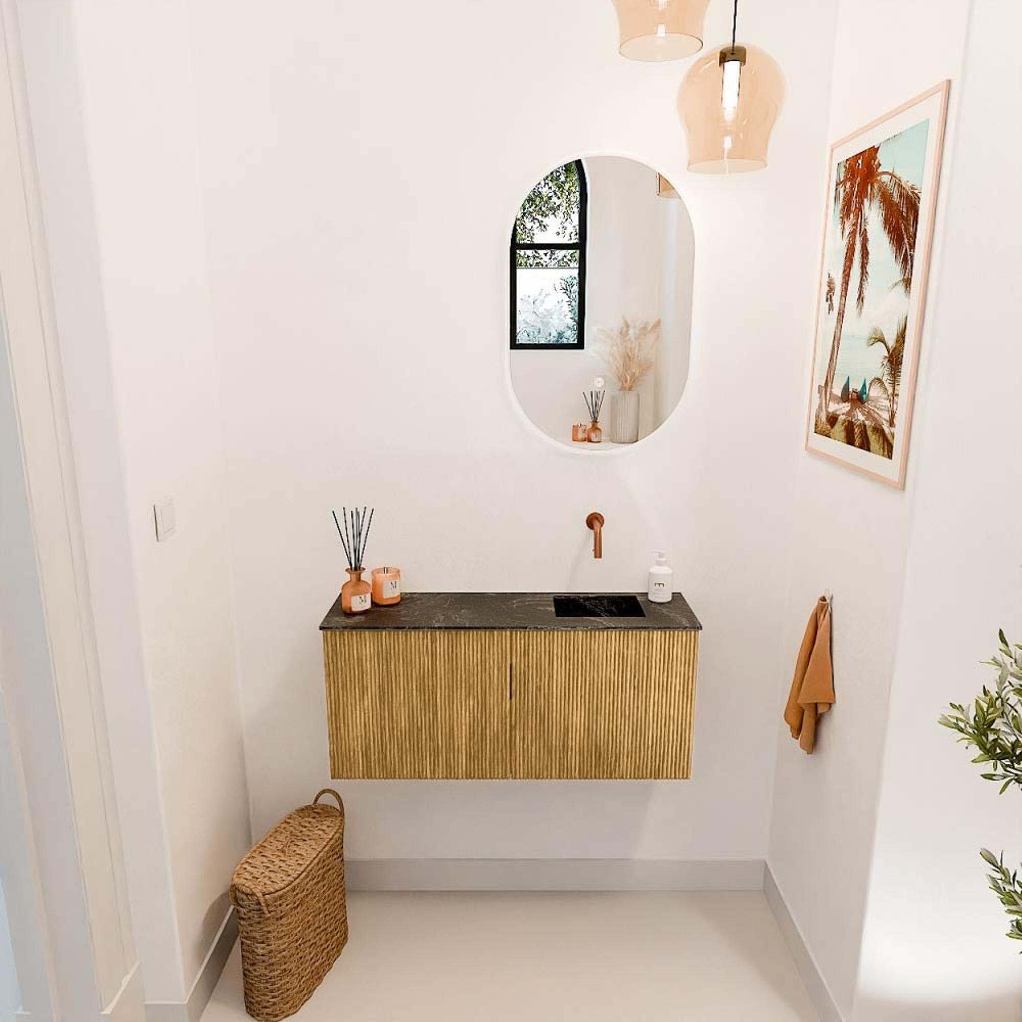 Mondiaz JOYA-DLUX 90cm toiletmeubel - kleur Oak - Wastafel FAYE positie Rechts Zonder kraangat kleur Lava.
