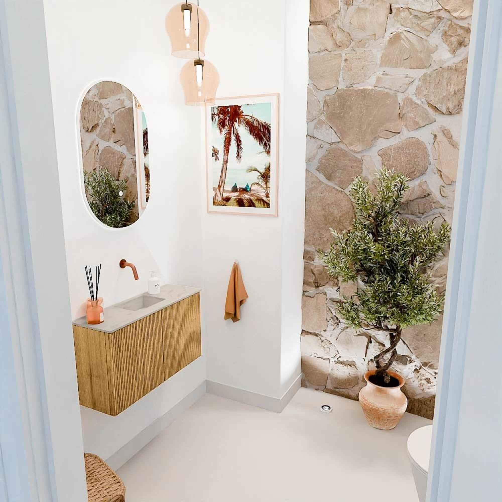 Met dit prachtige meubel geef je jouw badkamer of gastentoilet direct een warme, natuurlijke uitstraling. Het combineert de tijdloze charme van echt hout met een modern, strak design dat perfect past in diverse interieurstijlen. Dankzij de compacte afmetingen van 70 cm breed en 24,5 cm diep is het meubel ideaal voor kleinere ruimtes waar je toch niet wilt inleveren op stijl en functionaliteit. De geïntegreerde wastafel in een subtiele Opalo kleur maakt het geheel compleet en zorgt voor een frisse, lichte uitstraling. Zonder kraangat biedt het je de vrijheid om zelf de kraan te kiezen die het beste bij jouw wensen past. Dit meubel transformeert jouw ruimte moeiteloos tot een plek waar je elke dag met plezier begint en eindigt.