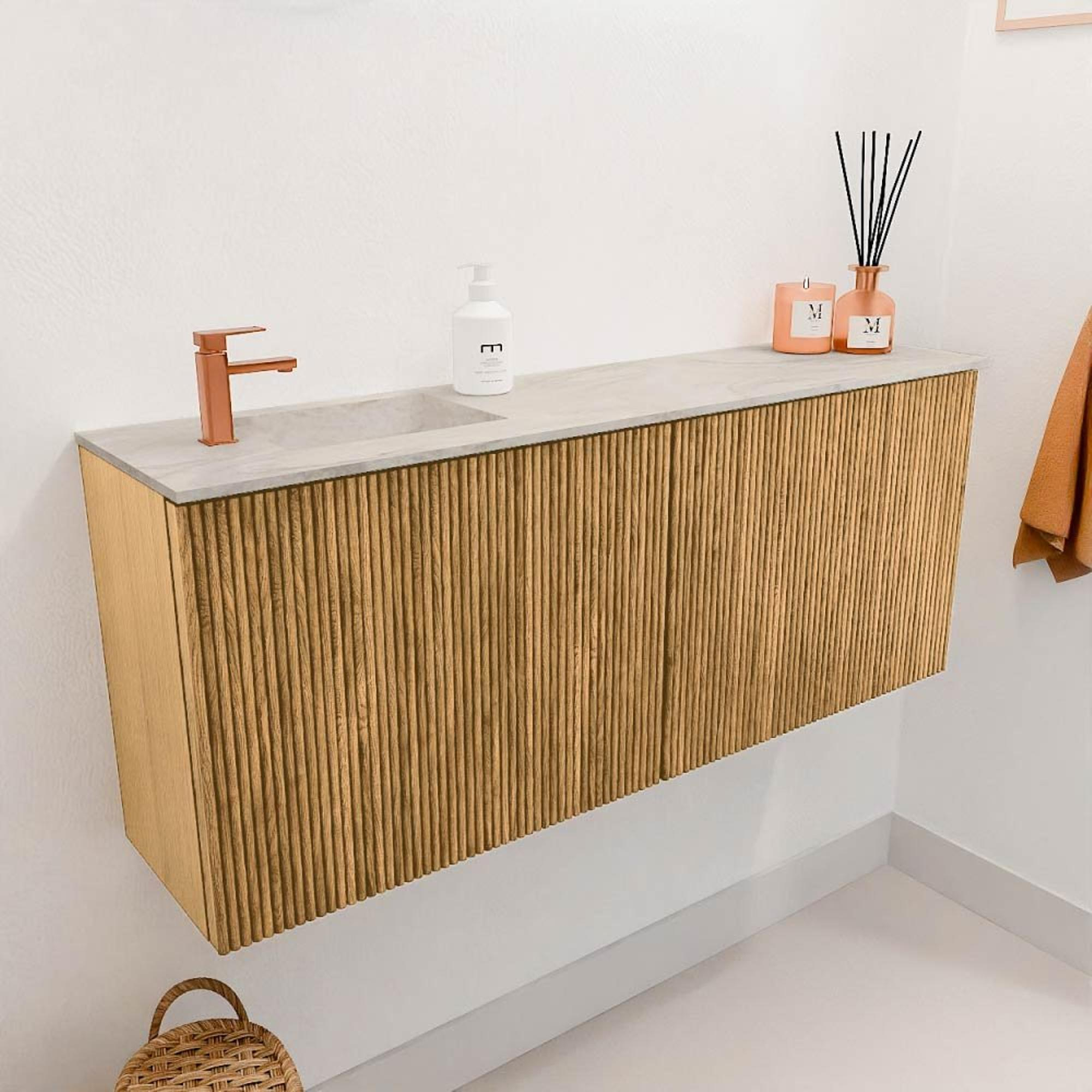Mondiaz JOYA-DLUX 100cm toiletmeubel - kleur Oak - Wastafel FAYE positie Links 1 kraangat kleur Ostra.