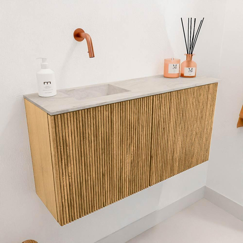 Mondiaz JOYA-DLUX 80cm toiletmeubel - kleur Oak - Wastafel FAYE positie Links Zonder kraangat kleur Ostra.