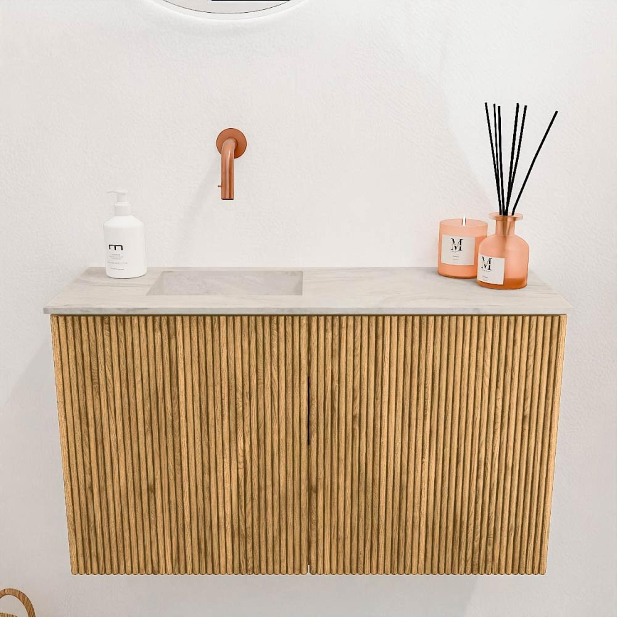 - Kleur wastafel: Ostra (crèmekleurig marmer)