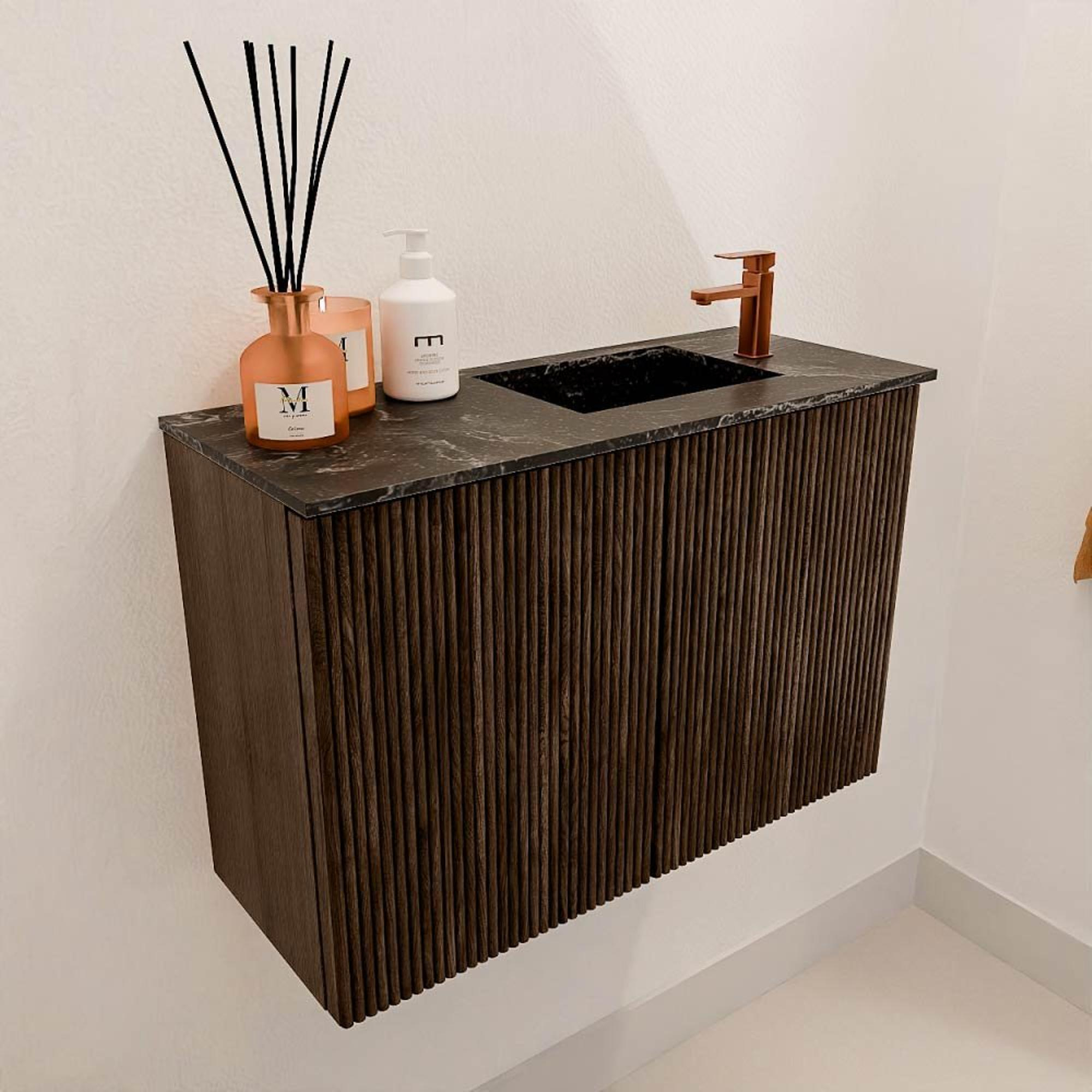 - Wastafel Faye in lava kleur, rechts gepositioneerd met één kraangat