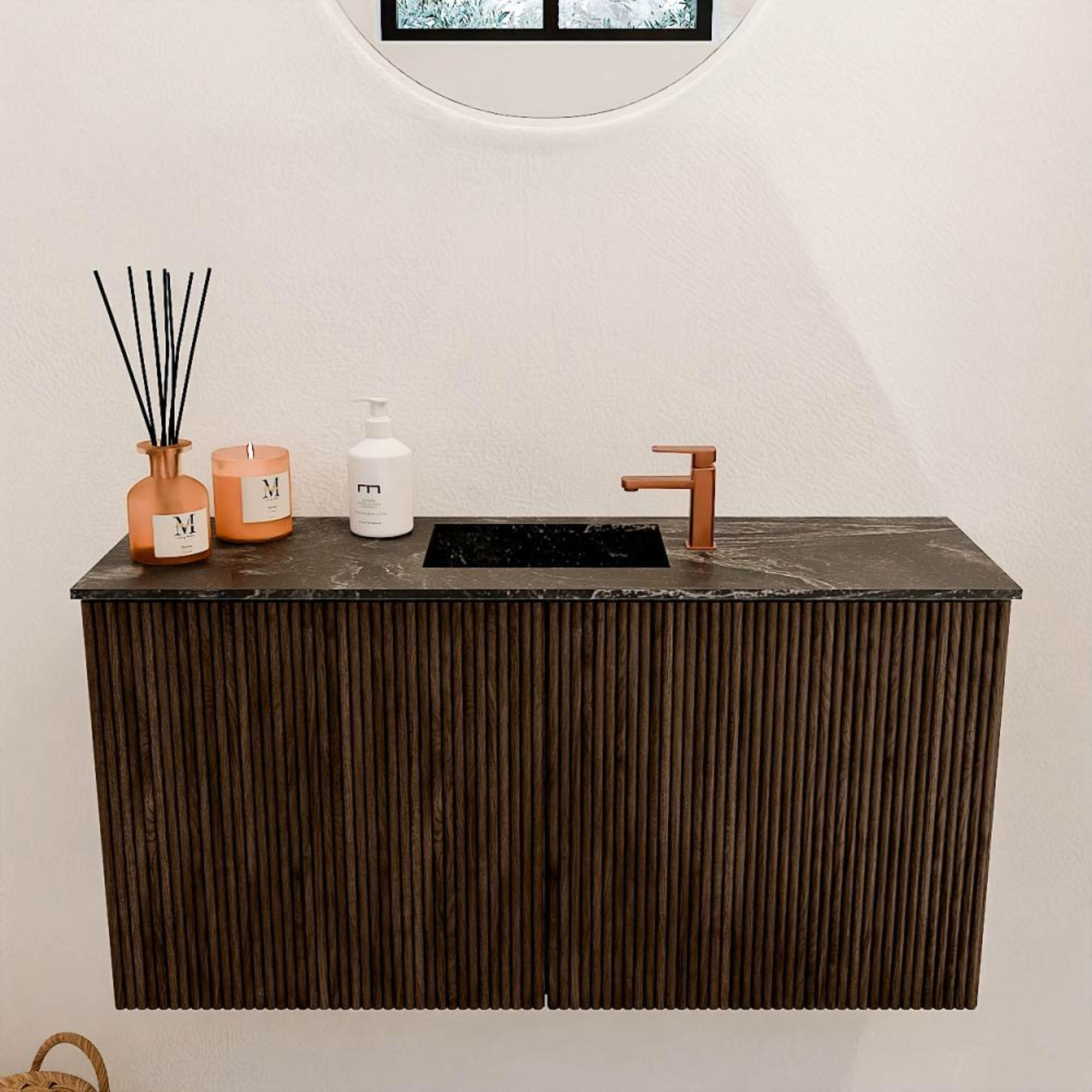 De warme walnootafwerking geeft het meubel een tijdloze en elegante uitstraling die moeiteloos aansluit bij verschillende interieurstijlen. Of je nu kiest voor een moderne, landelijke of industriële badkamer, dit meubel past er perfect bij. De combinatie met de Lava-kleurige wastafel voegt een verrassend en eigentijds accent toe. Zo creëer je een badkamer die niet alleen functioneel is, maar ook uitnodigt om te ontspannen en te genieten. Met dit meubel haal je een echte blikvanger in huis die jouw persoonlijke stijl versterkt.