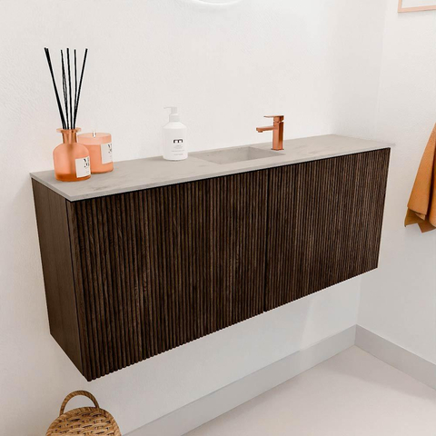 Dit meubel is vervaardigd van hoogwaardig echt hout, wat garant staat voor een lange levensduur en een robuuste constructie. De afwerking in walnoot beschermt het hout tegen vocht en slijtage, waardoor het meubel ook in een vochtige badkameromgeving zijn kwaliteit behoudt. Door te kiezen voor duurzame materialen investeer je in een meubel dat niet alleen mooi blijft, maar ook milieubewust is. Zo geniet je van een badkamermeubel dat zowel functioneel als verantwoord is, zonder concessies te doen aan design of comfort.