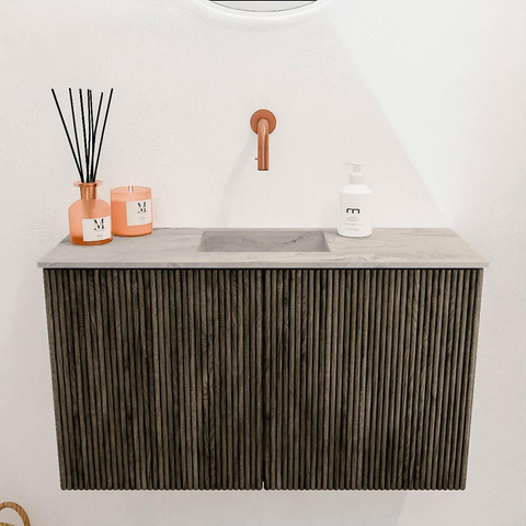 Het meubel valt direct op door zijn verfijnde uitstraling. De verticale groeven in het front geven het een eigentijdse en elegante look die moeiteloos aansluit bij verschillende interieurstijlen. De kleur Shadow is diep en sfeervol, waardoor het meubel een warme en uitnodigende sfeer creëert. De wastafel in de zachte kleur Glace zorgt voor een subtiel contrast dat het geheel in balans houdt. Dit stijlvolle design maakt van jouw toilet een plek waar je trots op bent, en waar je gasten zeker een compliment over zullen geven. Zo combineer je functionaliteit met een hoogwaardig design dat je badkamer echt afmaakt.