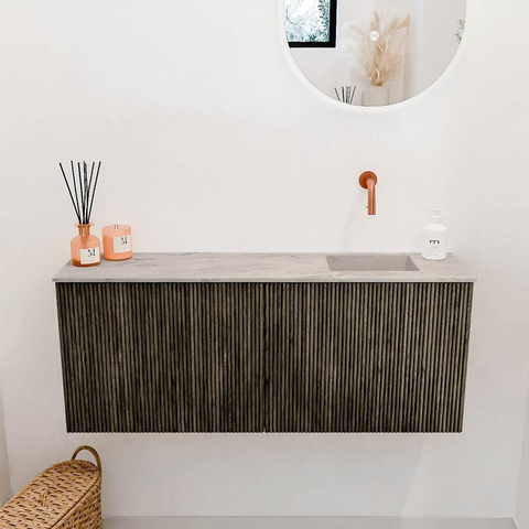 Met twee ruime deuren biedt dit meubel voldoende opbergruimte om al je toiletspullen netjes en overzichtelijk op te bergen. De compacte diepte van 24,5 cm maakt het meubel ideaal voor kleinere ruimtes, zonder dat je inlevert op comfort of gebruiksgemak. De wastafel is rechts gepositioneerd en zonder kraangat, waardoor je zelf de vrijheid hebt om een kraan naar keuze te plaatsen die perfect bij jouw stijl en wensen past. Dit maakt het meubel flexibel en aanpasbaar aan jouw persoonlijke situatie. Zo combineer je moeiteloos functionaliteit met een strak design, waardoor je badkamer er altijd opgeruimd en verzorgd uitziet.