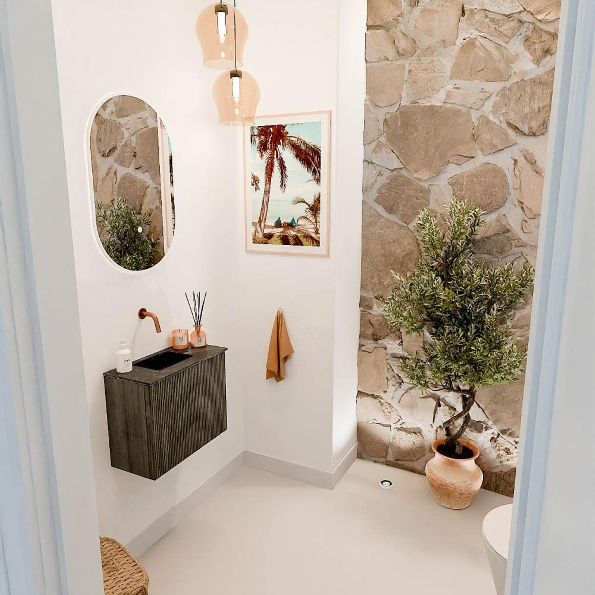 Een compacte en stijlvolle toevoeging aan je badkamer die direct sfeer en warmte brengt. Dit meubel combineert de natuurlijke schoonheid van massief eikenhout met een modern design, waardoor het niet alleen praktisch is, maar ook een echte blikvanger. Dankzij de slimme afmetingen past het perfect in kleinere ruimtes zoals een gasten-wc of een compacte badkamer, zonder dat je inlevert op opbergruimte of uitstraling. De wastafel met linkerpositie zonder kraangat geeft je de vrijheid om zelf een kraan te kiezen die bij jouw stijl en wensen past. Zo creëer je een persoonlijke en functionele plek waar je elke dag met plezier gebruik van maakt.