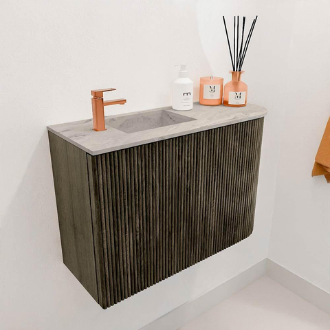 Mondiaz JOYA-DLUX 61.6cm toiletmeubel - ronding rechts kleur Shadow - Wastafel FAYE positie Links 1 kraangat kleur Glace.