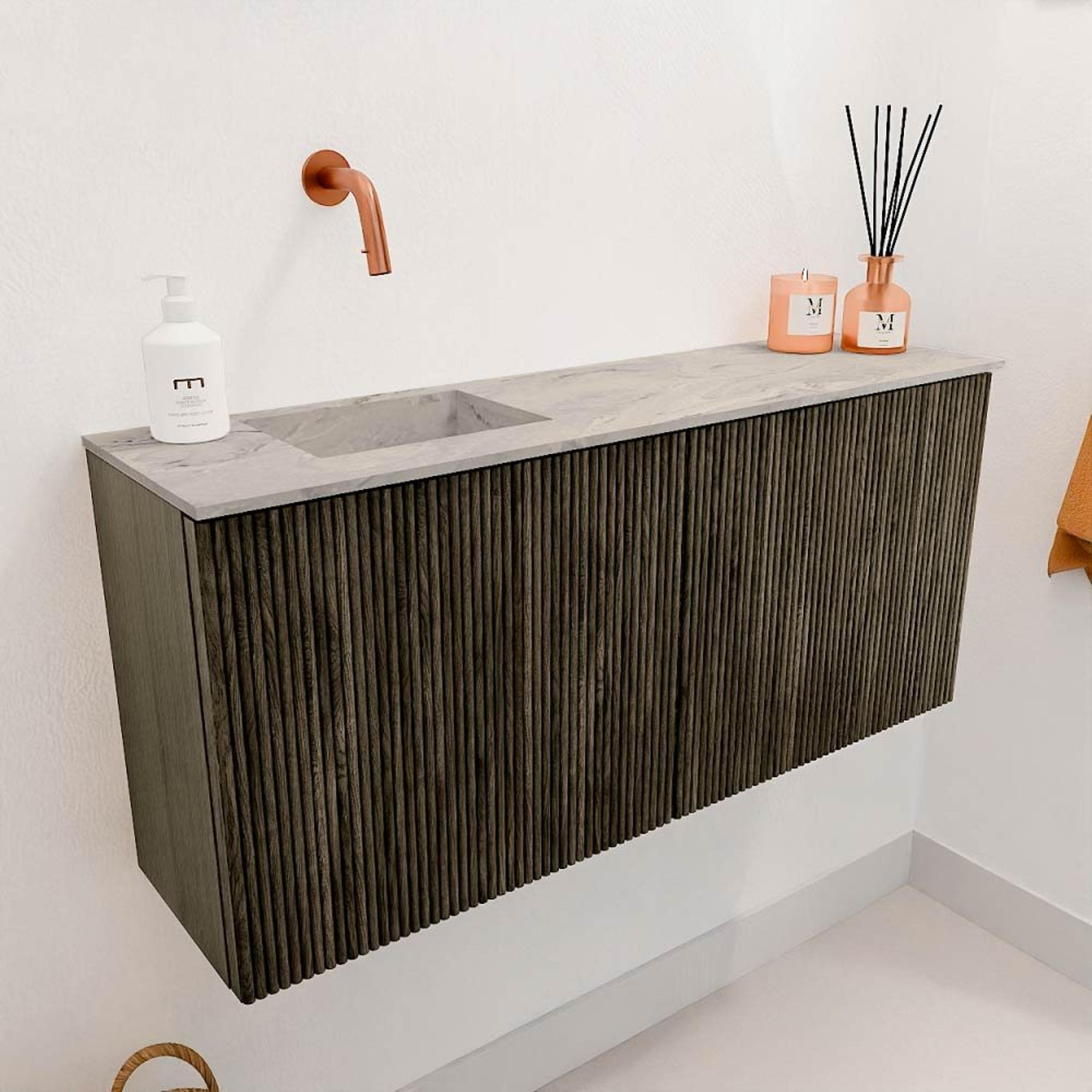 Mondiaz JOYA-DLUX 90cm toiletmeubel - kleur Shadow - Wastafel FAYE positie Links Zonder kraangat kleur Glace.