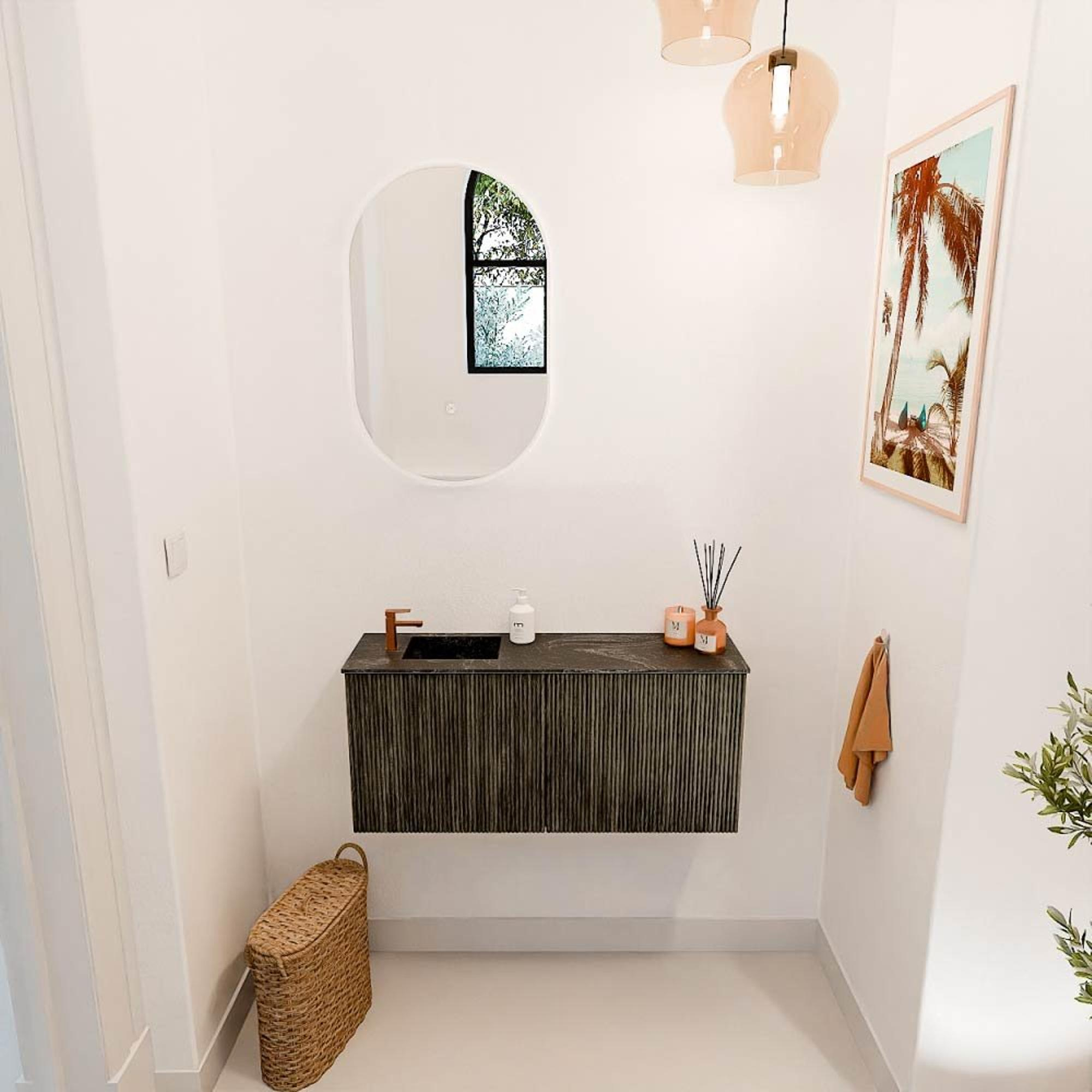Mondiaz JOYA-DLUX 90cm toiletmeubel - kleur Shadow - Wastafel FAYE positie Links 1 kraangat kleur Lava.